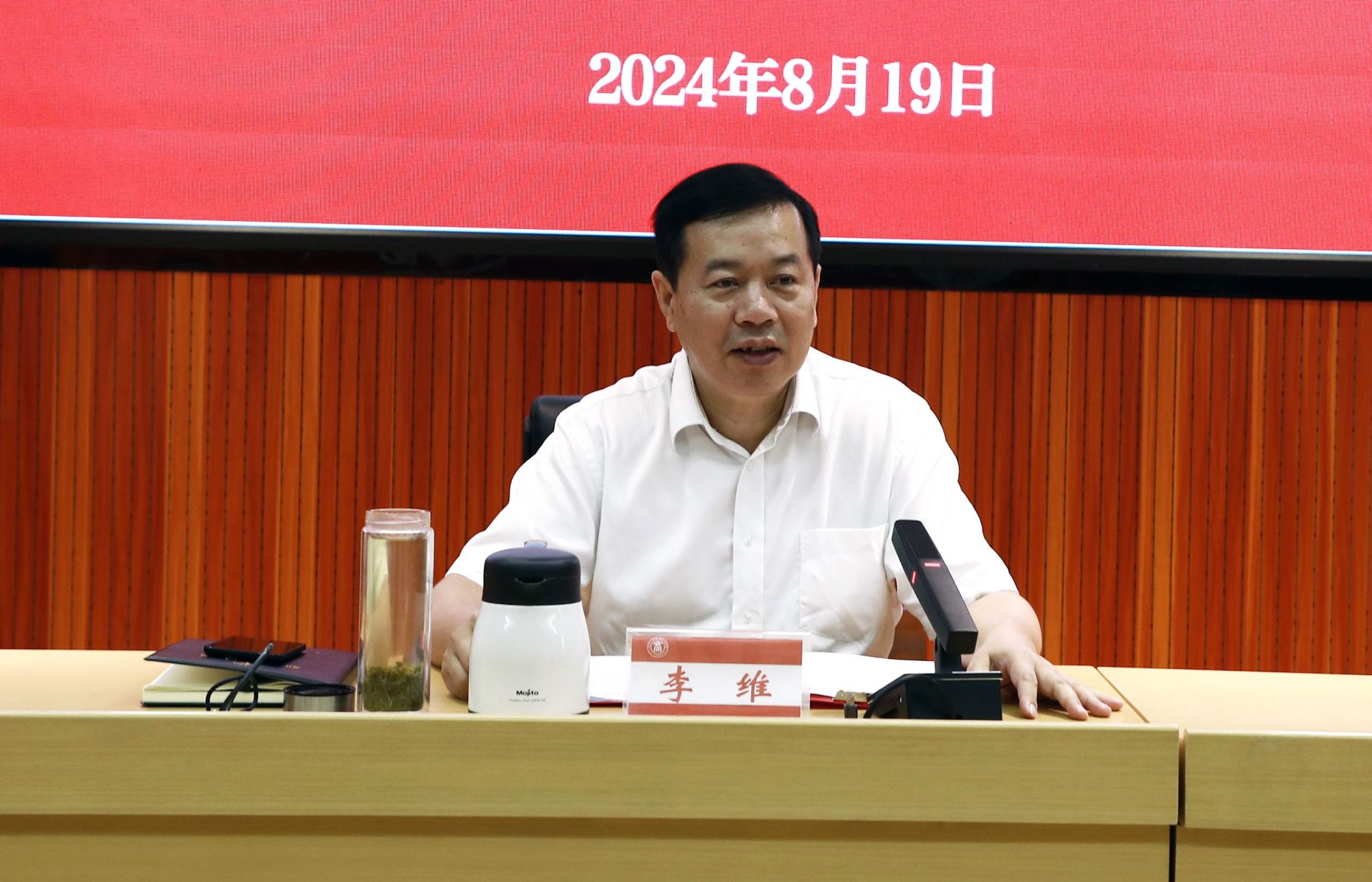 為深入學習貫徹習近平新時代中國特色社會主義思想,深入學習貫徹黨的二十屆三中全會精神和習近平總書記關(guān)于廣西工作論述的重要要求,進一步提升學校領(lǐng)導干部黨性觀念、政治修養(yǎng)和履職能力,我校舉辦2024年領(lǐng)導干部素質(zhì)能力提升培訓班。8月19日,培訓班在鵬飛校區(qū)舉辦開班儀式,學校黨委書記李維作開班動員講話,校長劉進主持開班儀式。