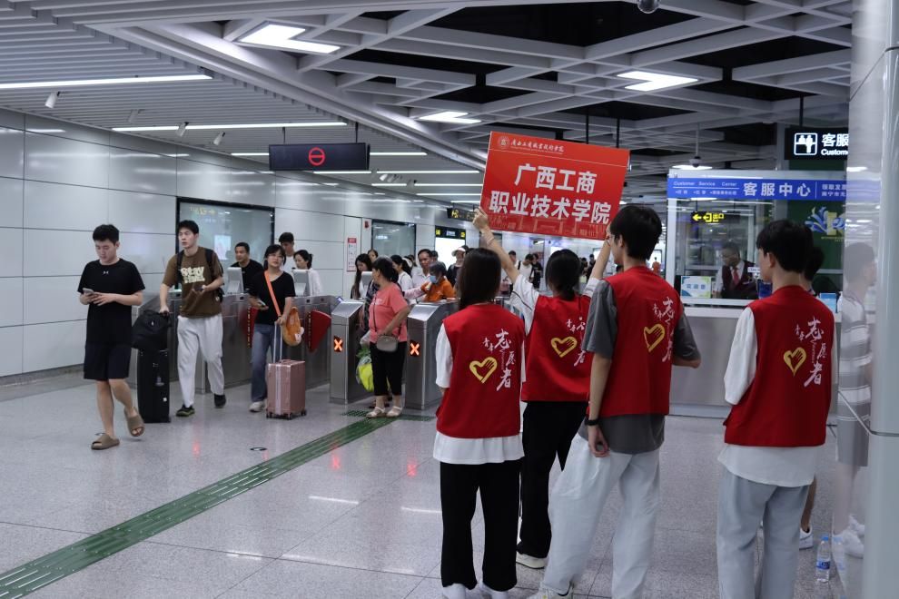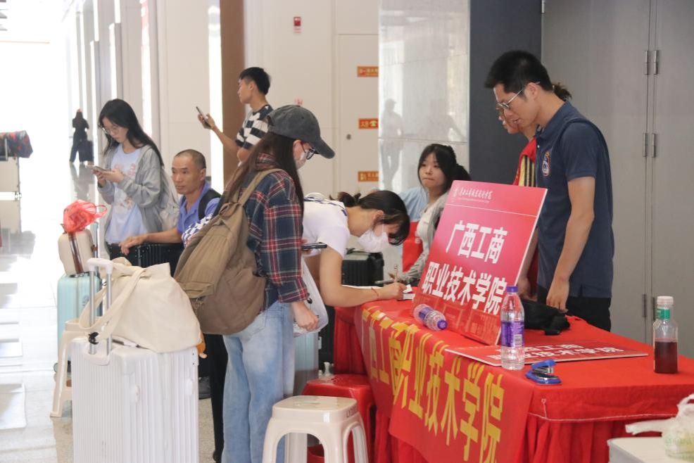 為了確保每位新生都能順利報(bào)到,迎新日當(dāng)天,學(xué)校精心組織了由教師和學(xué)生志愿者組成的迎接團(tuán)隊(duì)。他們?cè)缭缡睾蛟诟鞔蠡疖?chē)站、汽車(chē)站和地鐵站,手持“廣西工商職業(yè)技術(shù)學(xué)院”的醒目標(biāo)識(shí)牌,以最溫暖的笑容和最真摯的熱情,迎接每一位遠(yuǎn)道而來(lái)的新生及家長(zhǎng),引導(dǎo)他們前往學(xué)校。