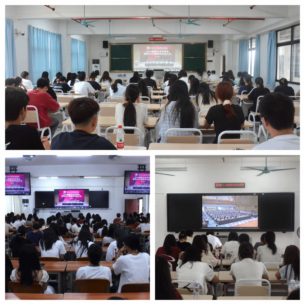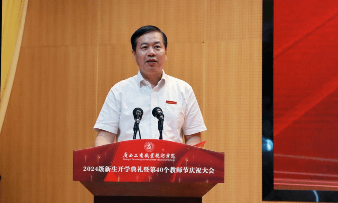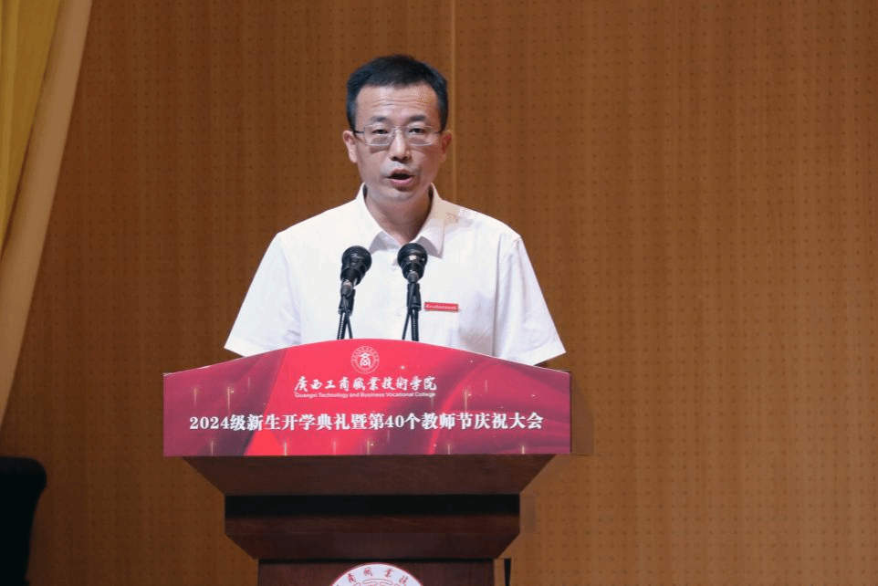 金秋九月,碩果盈枝。為熱烈歡迎2024級新生到學(xué)校學(xué)習(xí),隆重慶祝第40個教師節(jié),9月9日上午,我校以線上線下相結(jié)合的方式在武鳴校區(qū)、鵬飛校區(qū)、中堯校區(qū)同步舉行2024級新生開學(xué)典禮暨第40個教師節(jié)慶祝大會。學(xué)校領(lǐng)導(dǎo)李維、劉進(jìn)、安仲文、陳寧春、韋云鳳、闕勇平,各單位、各部門主要負(fù)責(zé)人,受表彰教師,新入職教師,武鳴校區(qū)2024級輔導(dǎo)員代表和武鳴校區(qū)2024級新生代表在線下主會場參會,全體2024級新生及各部門、各單位教職工在線上參會。學(xué)校黨委副書記安仲文主持大會。