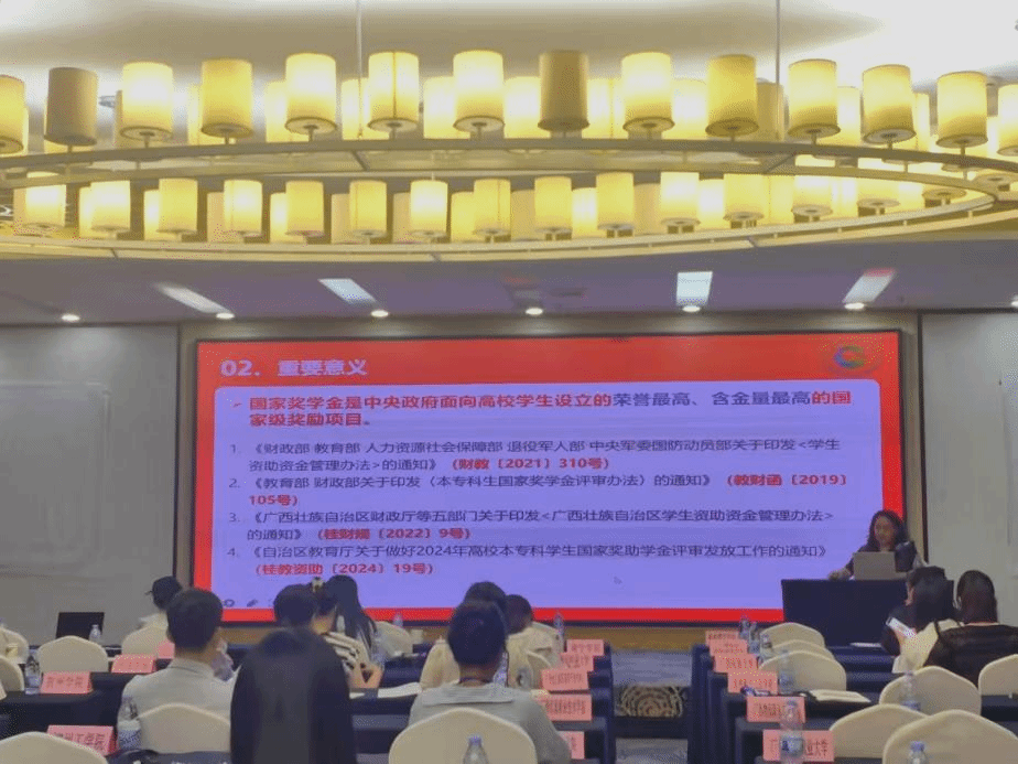 9月12日至14日,由廣西壯族自治區(qū)教育廳主辦、廣西壯族自治區(qū)學(xué)生資助管理中心和廣西學(xué)生資助管理培訓(xùn)研修基地(南寧師范大學(xué))承辦的2024年全區(qū)高等學(xué)校學(xué)生資助管理干部能力提升中級(jí)培訓(xùn)班在桂林順利舉辦。我校在培訓(xùn)班上作資助工作經(jīng)驗(yàn)分享。