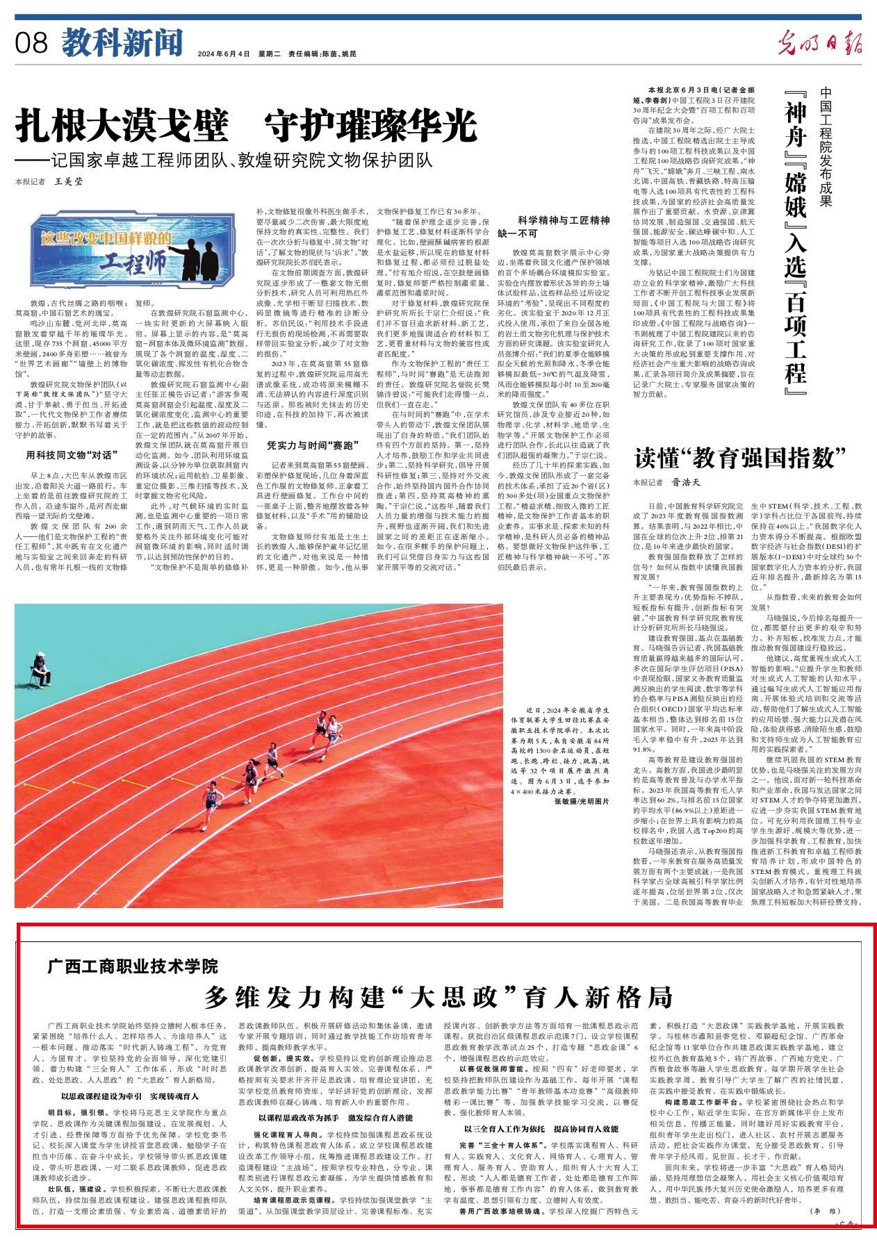 2024年6月出版的《光明日報》刊發(fā)學(xué)校黨委書記李維署名文章《廣西工商職業(yè)技術(shù)學(xué)院:多維發(fā)力構(gòu)建“大思政”育人新格局》。全文如下。