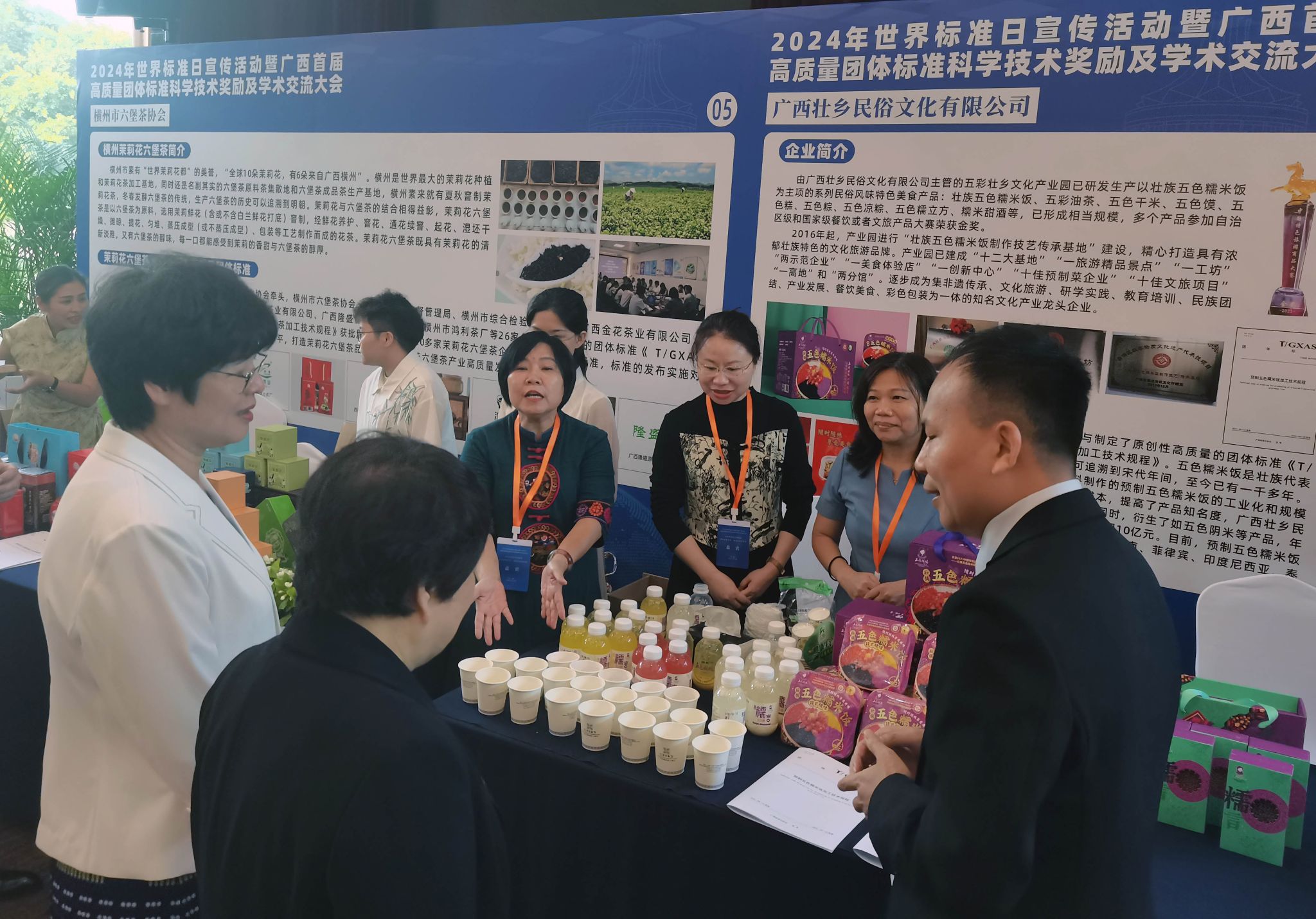 (中國標(biāo)準(zhǔn)化協(xié)會、廣西科學(xué)技術(shù)協(xié)會、廣西標(biāo)準(zhǔn)化協(xié)會等領(lǐng)導(dǎo)到預(yù)制五色糯米飯展區(qū)參觀并指導(dǎo))