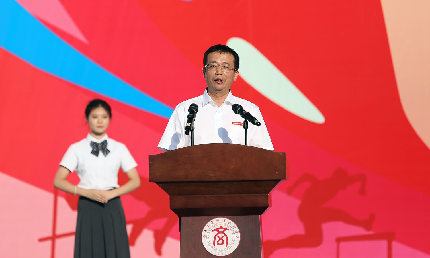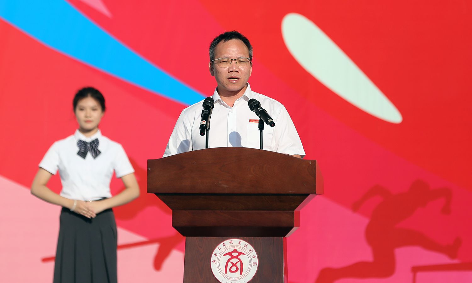 隨后,劉進校長為閉幕式致辭,他向取得優(yōu)異成績的運動員表示祝賀,對辛勤付出的全體工作人員表示衷心感謝。他表示,本次運動會精彩紛呈,運動員們在賽場上你追我趕、奮勇爭先,彰顯了拼搏進取、團結友愛的精神,讓我們感受到了運動的魅力與青春的力量,這是一場青春閃耀的盛會,不僅賽出了風格,更賽出了友誼和高水平。劉進校長強調,體育運動不僅是鍛煉身體的方式,更是培養(yǎng)意志品質、增強團結合作的重要途徑,希望同學們將運動會中展現的拼搏精神和團結意識延續(xù)到今后的學習和生活中。他勉勵廣大師生要堅定信念,求真務實,繼續(xù)秉持對體育的熱愛,積極鍛煉身體,增強體魄,為校園注入更多活力與光彩;要努力工作,勤奮學習,積極為學校新一輪“雙高”建設貢獻自身的智慧與力量,共同譜寫學校輝煌的新篇章。