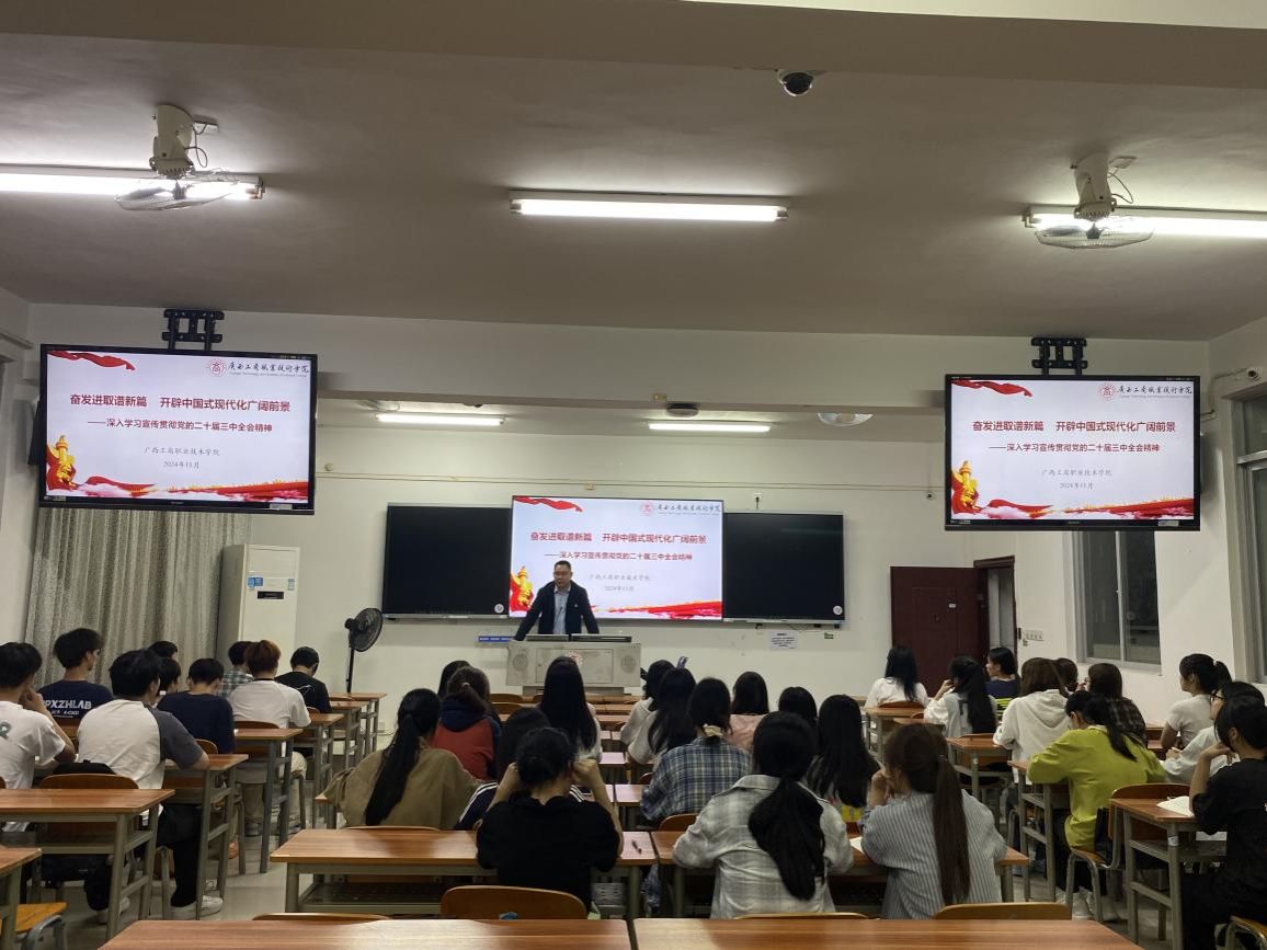 11月5日,學(xué)校副校長陳寧春在鵬飛校區(qū)2421教室為計(jì)應(yīng)2401班同學(xué)講授題為《奮發(fā)進(jìn)取譜新篇 開辟中國式現(xiàn)代化廣闊前景——深入學(xué)習(xí)貫徹黨的二十屆三中全會精神》主題思政課。