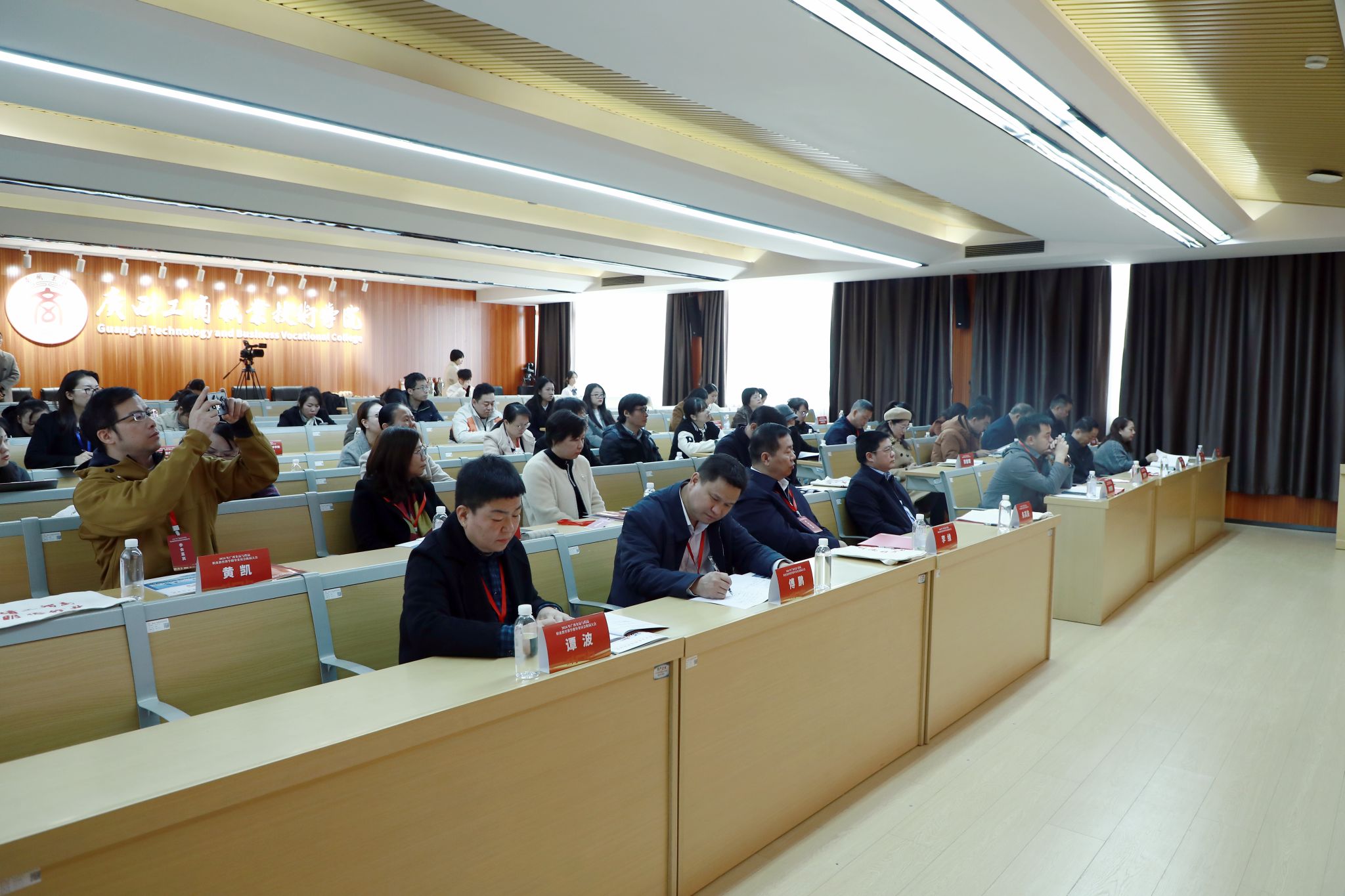 廣西食品藥品專業(yè)教育教學(xué)指導(dǎo)委員會(huì)委員、兄弟院校代表,學(xué)校相關(guān)二級(jí)學(xué)院負(fù)責(zé)人與代表老師參加大會(huì)。