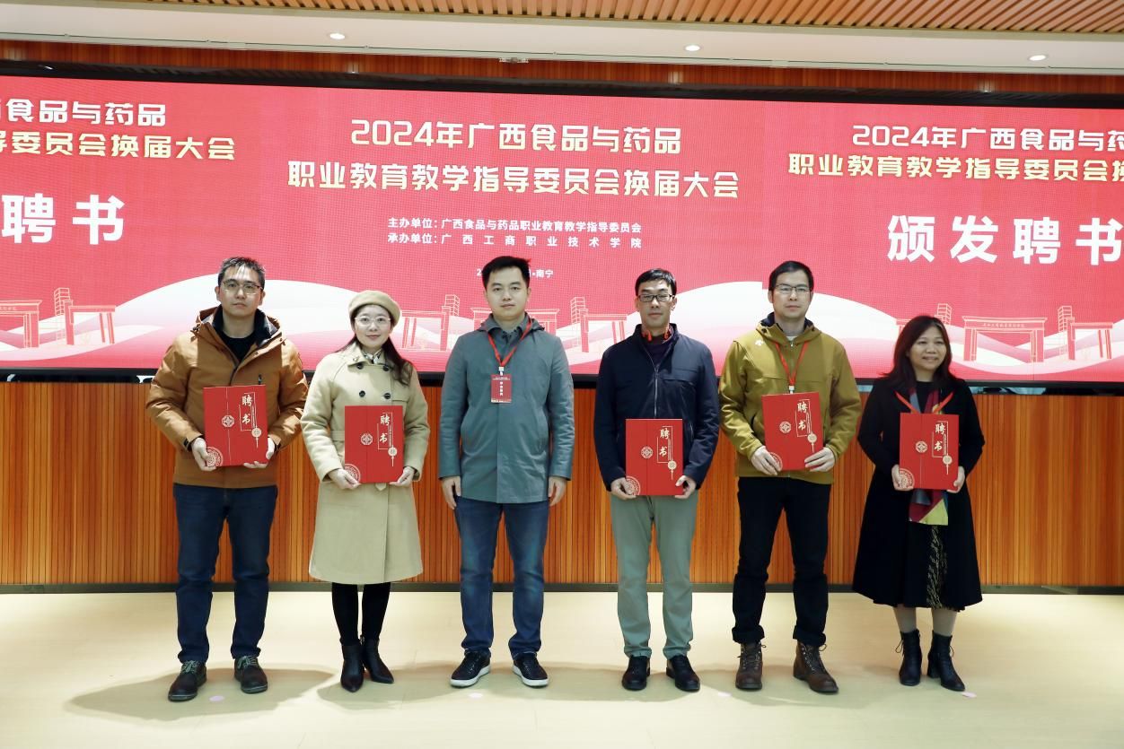 大會(huì)宣讀新一屆廣西食品與藥品職業(yè)教育教學(xué)指導(dǎo)委員會(huì)委員名單。其中,自治區(qū)糧食局副局長李國平任主任委員,學(xué)校黨委書記李維、黨委學(xué)生工作部部長譚波任副主任委員,學(xué)校副校長闕勇平任秘書長,學(xué)校糧油康旅學(xué)院李影球博士任委員。