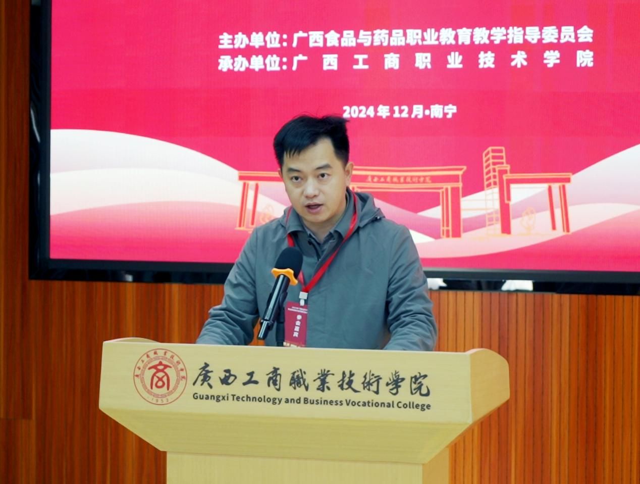 2024年12月20日,廣西食品與藥品職業(yè)教育指導(dǎo)委員會(huì)(以下簡稱廣西食品藥品行指委)換屆大會(huì)在我校成功召開。自治區(qū)糧食和物資儲(chǔ)備局黨組成員、副局長朱其俊,廣西教育研究院職業(yè)教育研究所所長李春鵬,自治區(qū)糧食和物資儲(chǔ)備局人事處副處長秦林,學(xué)校黨委書記李維,廣西農(nóng)業(yè)職業(yè)技術(shù)大學(xué)副校長高崇敏,廣西職業(yè)技術(shù)學(xué)院副校長林松,廣西衛(wèi)生職業(yè)技術(shù)學(xué)院學(xué)校紀(jì)委書記傅鵬等30余名委員專家參加會(huì)議。會(huì)議由學(xué)校副校長闕勇平主持。