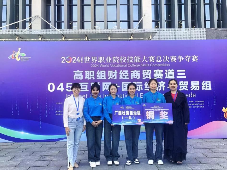 除了課堂教學,左瑞瑞老師還積極組織學生參加職業(yè)技能競賽,將其視為另一種形式的教學實踐。她帶領學生參加了多項職業(yè)技能競賽,并取得了優(yōu)異成績。2024年,她指導學生參加世界職業(yè)院校技能大賽總決賽,榮獲高職組財經(jīng)商貿賽道“互聯(lián)網(wǎng)+國際經(jīng)濟與貿易”組銅獎,并在廣西技能大賽高職組“互聯(lián)網(wǎng)+國際經(jīng)濟與貿易”賽項中斬獲一等獎。左瑞瑞老師表示:“雖然備賽過程艱辛,犧牲了很多個人時間,但這對學生的成長起到了重要的推動作用。”她認為,競賽不僅加深了學生對專業(yè)知識的理解,還拓展了他們的知識體系,提升了組織能力、協(xié)調能力、語言表達能力以及面對困難的意志力。作為指導教師,她不僅為榮譽感到喜悅,更為學生的成長進步感到由衷的幸福和滿足。
