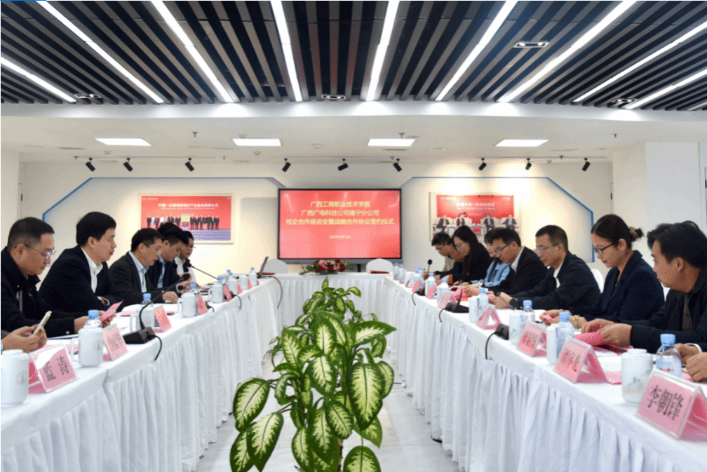 3月12日,學(xué)校校長(zhǎng)劉進(jìn)、副校長(zhǎng)鄭華等一行10人前往廣西廣電科技公司南寧分公司開(kāi)展校企合作座談,并簽署戰(zhàn)略合作協(xié)議。廣西廣電網(wǎng)絡(luò)公司黨委副書(shū)記、副董事長(zhǎng)、總經(jīng)理陳遠(yuǎn)程,廣西廣電科技公司南寧分公司黨委書(shū)記、總經(jīng)理凌廣宇及相關(guān)負(fù)責(zé)同志出席會(huì)議。雙方共同見(jiàn)證簽約。