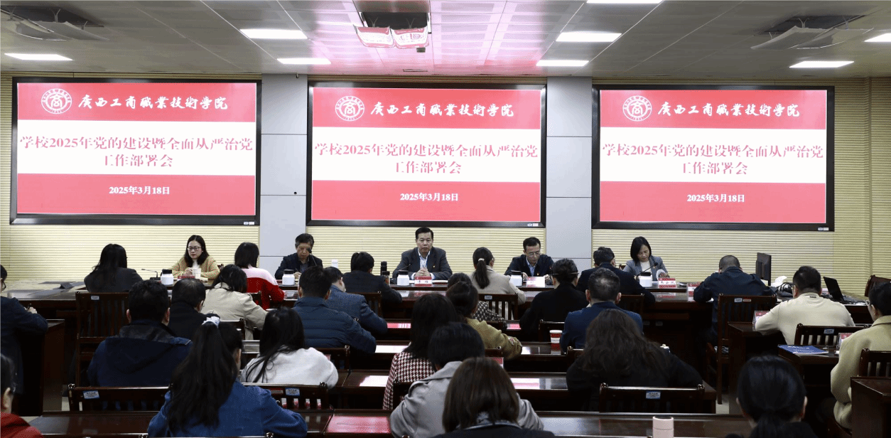 3月18日,學(xué)校在鵬飛校區(qū)召開(kāi)2025年黨的建設(shè)暨全面從嚴(yán)治黨工作部署會(huì),學(xué)習(xí)全區(qū)高校黨的建設(shè)工作會(huì)議精神,部署學(xué)校2025年黨的建設(shè)暨全面從嚴(yán)治黨工作和學(xué)校2025年紀(jì)檢監(jiān)察工作。學(xué)校黨委書記李維,學(xué)校校長(zhǎng)劉進(jìn),學(xué)校黨委副書記安仲文,學(xué)校黨委副書記、紀(jì)委書記韋云鳳,學(xué)校副校長(zhǎng)鄭華參加會(huì)議。