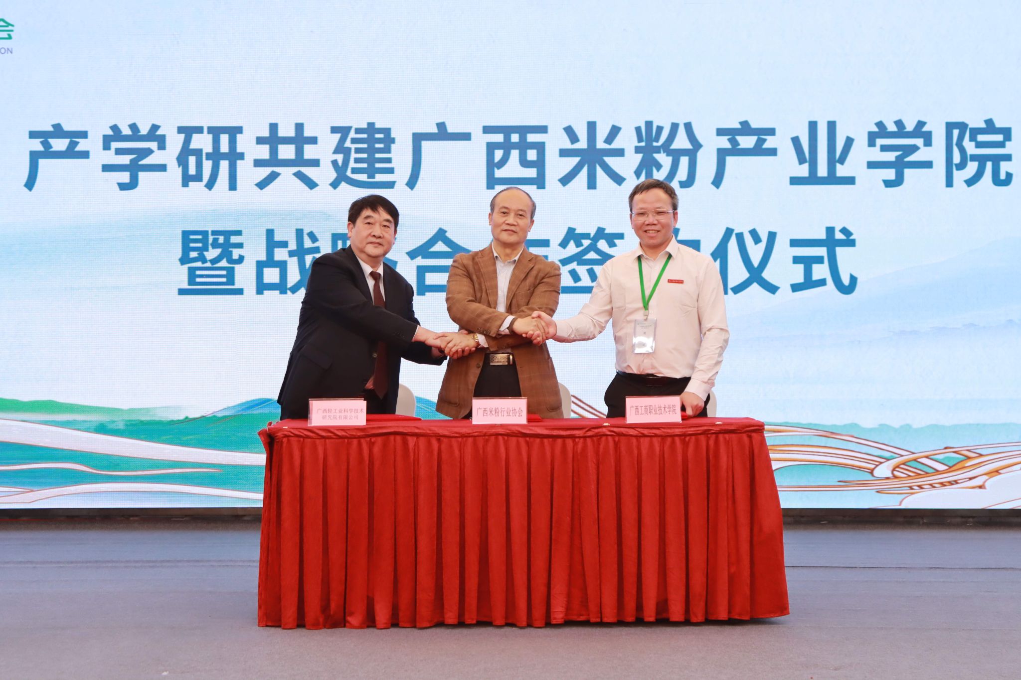 春鳥鳴新曲,新夢(mèng)展宏圖。2025年3月21日,廣西米粉行業(yè)協(xié)會(huì)成立大會(huì)暨第一次會(huì)員大會(huì)在南寧舉行,我校當(dāng)選常務(wù)副理事長(zhǎng)單位,并與廣西米粉行業(yè)協(xié)會(huì)和廣西輕工業(yè)科學(xué)技術(shù)研究院簽訂產(chǎn)學(xué)研合作協(xié)議,共同組建廣西米粉產(chǎn)業(yè)學(xué)院。廣西米粉產(chǎn)業(yè)學(xué)院以推動(dòng)產(chǎn)學(xué)研深度開展產(chǎn)教融合、實(shí)現(xiàn)共建共贏為目的,為廣西米粉產(chǎn)業(yè)的持續(xù)健康發(fā)展提供強(qiáng)有力的人才支撐和智力支持。