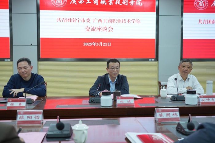 座談會上,劉進校長代表學校對共青團南寧市委一行表示熱烈歡迎,并詳細介紹了學校辦學歷史與育人特色。他表示,學校將以此次合作為契機,與共青團南寧市委共筑“紅色育人”新高地、共建“政-企-?!甭?lián)動機制和共育青年成長“生態(tài)圈”,將糧食安全、人工智能等特色領(lǐng)域融入人才培養(yǎng),為首府經(jīng)濟社會發(fā)展輸送更多高素質(zhì)青年人才。