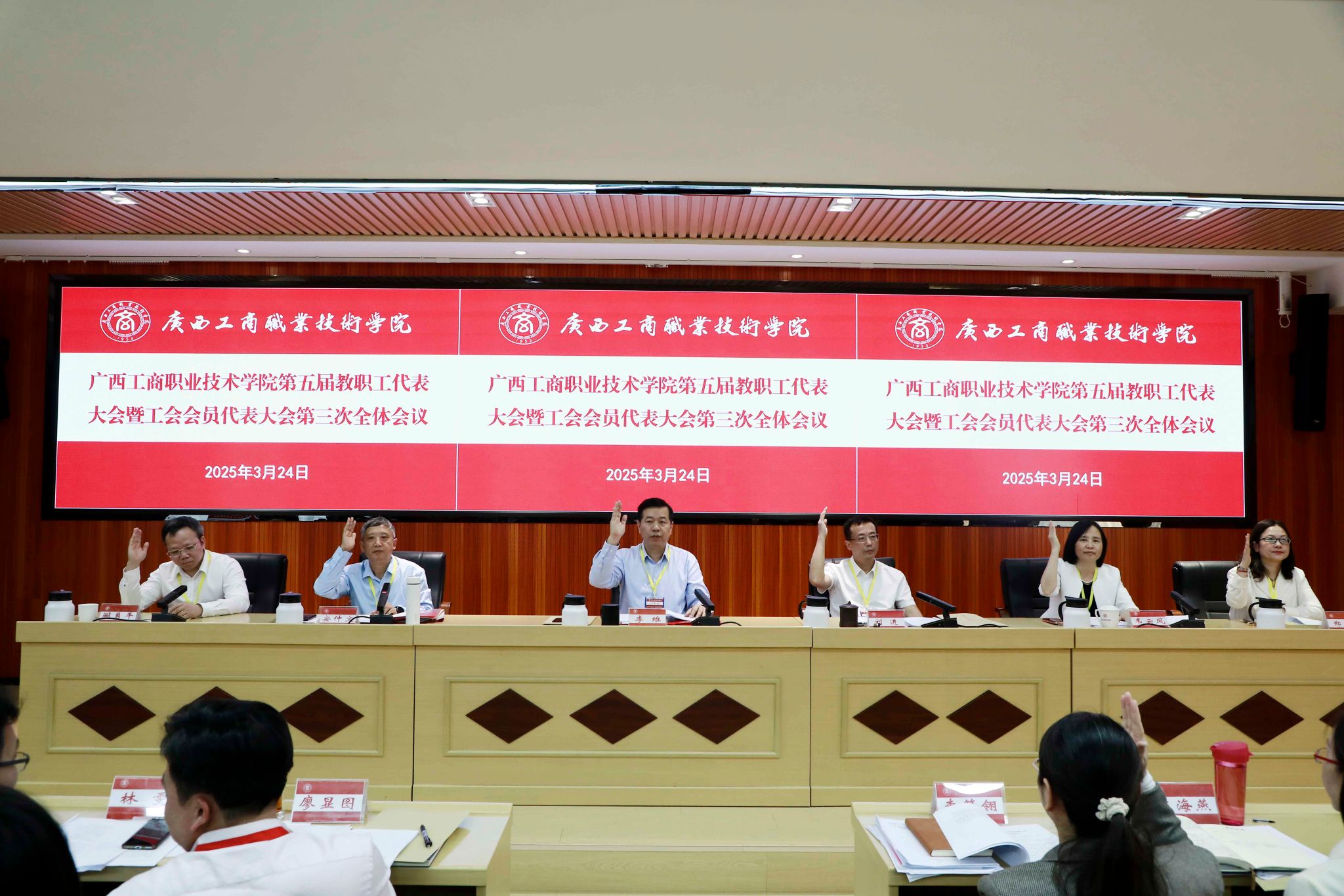 凝心聚力謀發(fā)展,砥礪奮進(jìn)譜新篇。3月24日,學(xué)校在鵬飛校區(qū)召開第五屆教職工代表大會(huì)暨工會(huì)會(huì)員代表大會(huì)第三次全體會(huì)議。學(xué)校黨委書記李維,黨委副書記、校長劉進(jìn),黨委副書記安仲文,黨委副書記、紀(jì)委書記韋云鳳,副校長闕勇平,副校長鄭華,來自全校各部門各單位的教代會(huì)代表、工代會(huì)代表、列席人員、特邀代表參加會(huì)議。