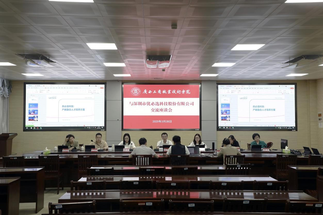 當天下午,學校與深圳市優(yōu)必選科技股份有限公司開展交流座談,雙方就人工智能人才培養(yǎng)、課程改革、職教出海等方面內容進行交流探討。