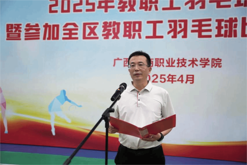 學校黨委書記李維在開賽式上宣布2025年教職工羽毛球比賽暨參加全區(qū)教職工羽毛球比賽選拔賽正式開始。