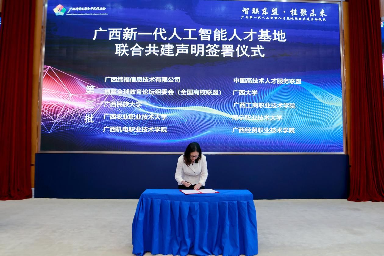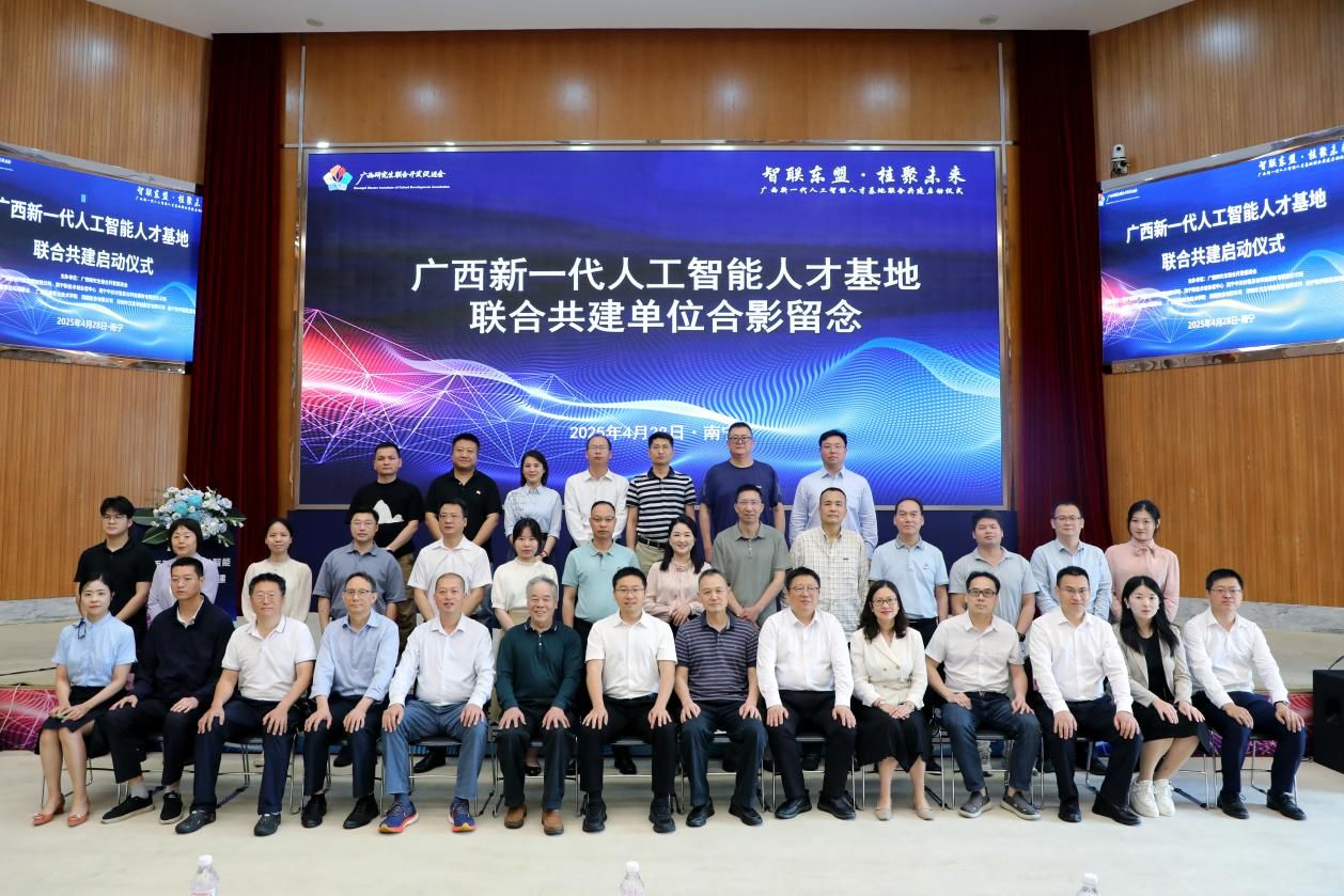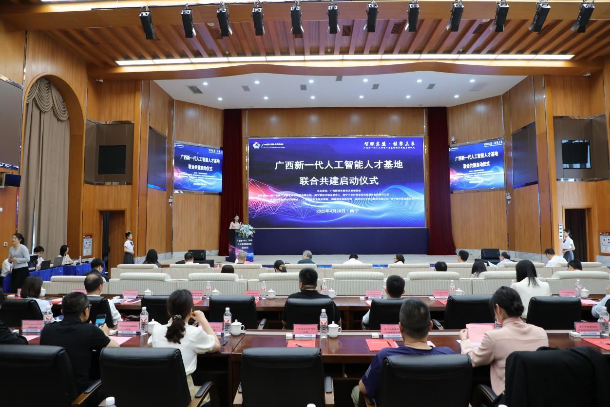 為深入貫徹落實(shí)國(guó)家《新一代人工智能發(fā)展規(guī)劃》及廣西壯族自治區(qū)“數(shù)字強(qiáng)區(qū)”戰(zhàn)略部署,建立產(chǎn)、科、教、人一體化數(shù)字產(chǎn)業(yè)人才培育體系,2025年4月28日,廣西新一代人工智能人才基地聯(lián)合共建啟動(dòng)儀式在南寧高新區(qū)中關(guān)村創(chuàng)新示范基地舉行。來(lái)自全區(qū) 40 家政、產(chǎn)、學(xué)、研、金、用單位代表共同簽署《聯(lián)合共建聲明》,標(biāo)志著廣西在人工智能人才培養(yǎng)、技術(shù)創(chuàng)新與產(chǎn)業(yè)融合領(lǐng)域邁出關(guān)鍵性一步,正式開(kāi)啟面向東盟的數(shù)字經(jīng)濟(jì)人才高地建設(shè)新征程。我校作為共建單位之一簽署《聯(lián)合共建聲明》,并協(xié)辦此次啟動(dòng)儀式。