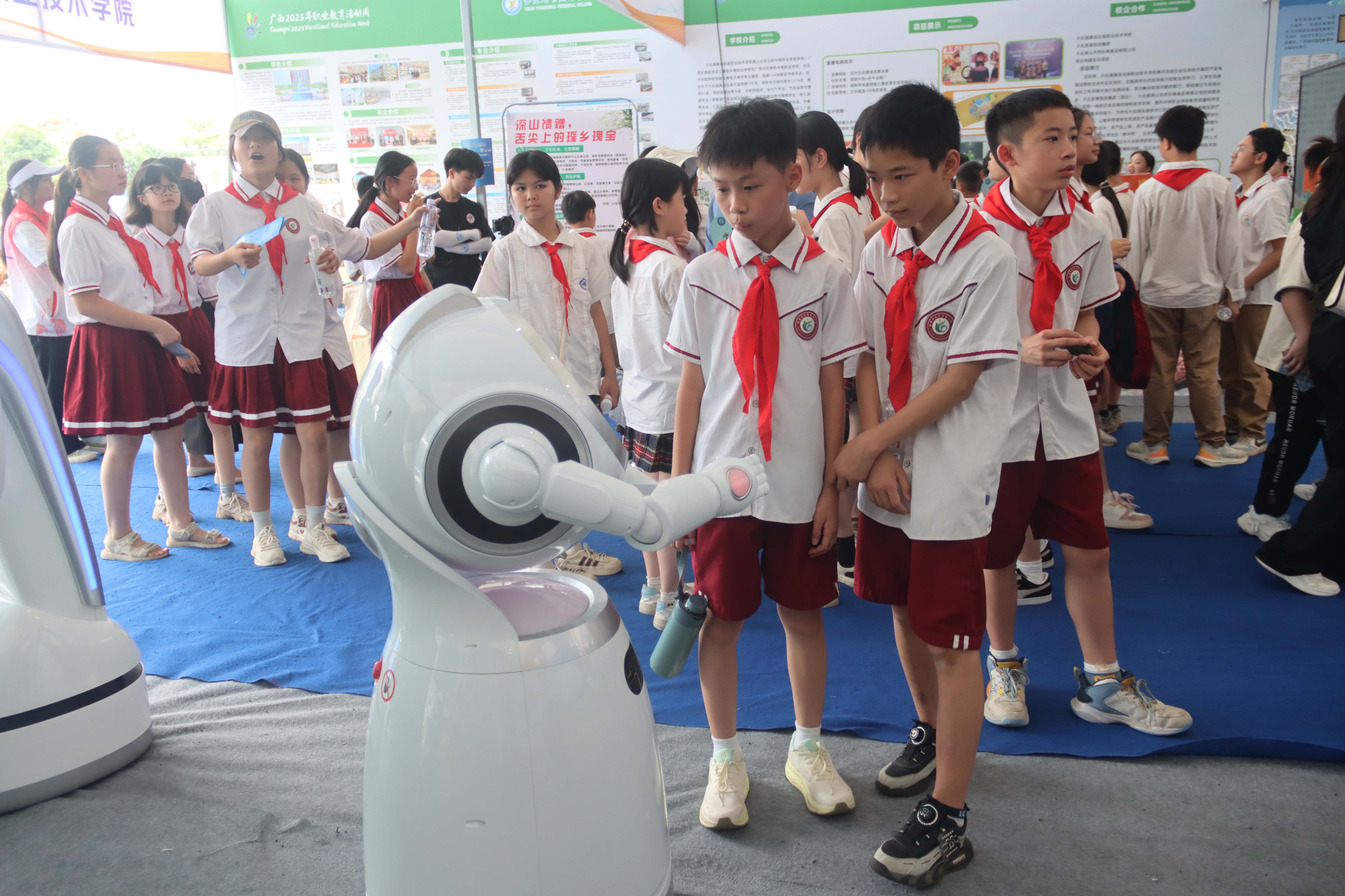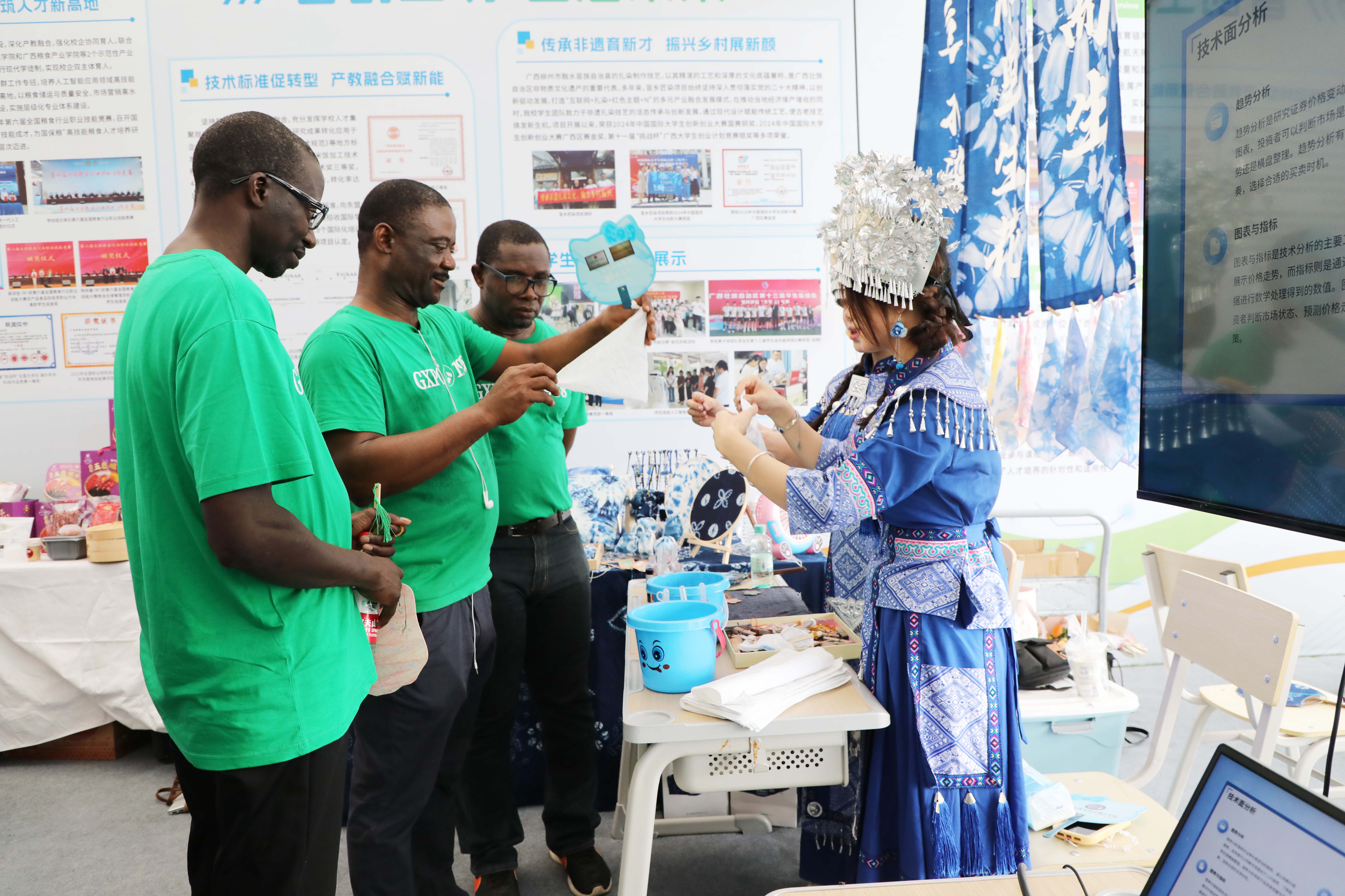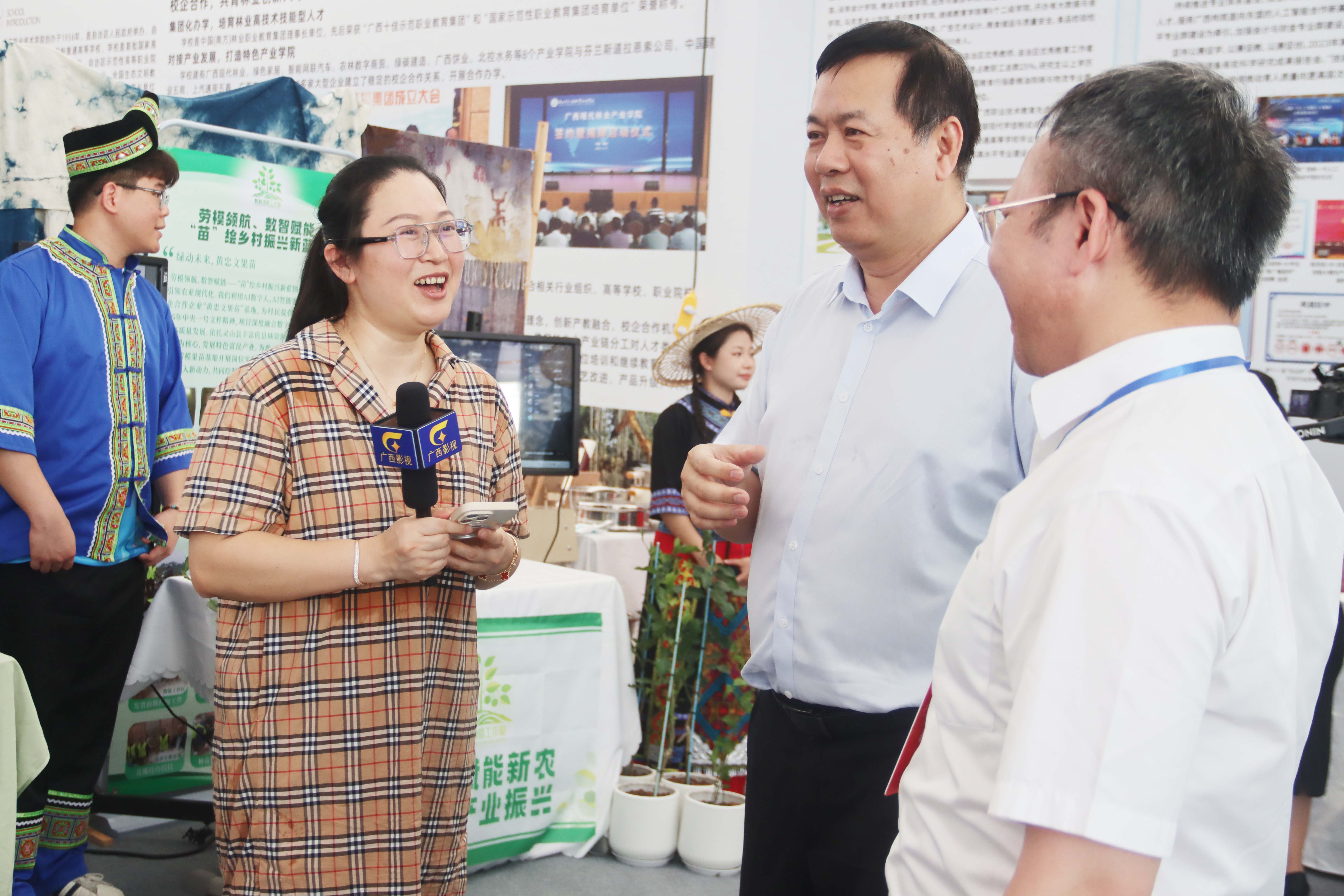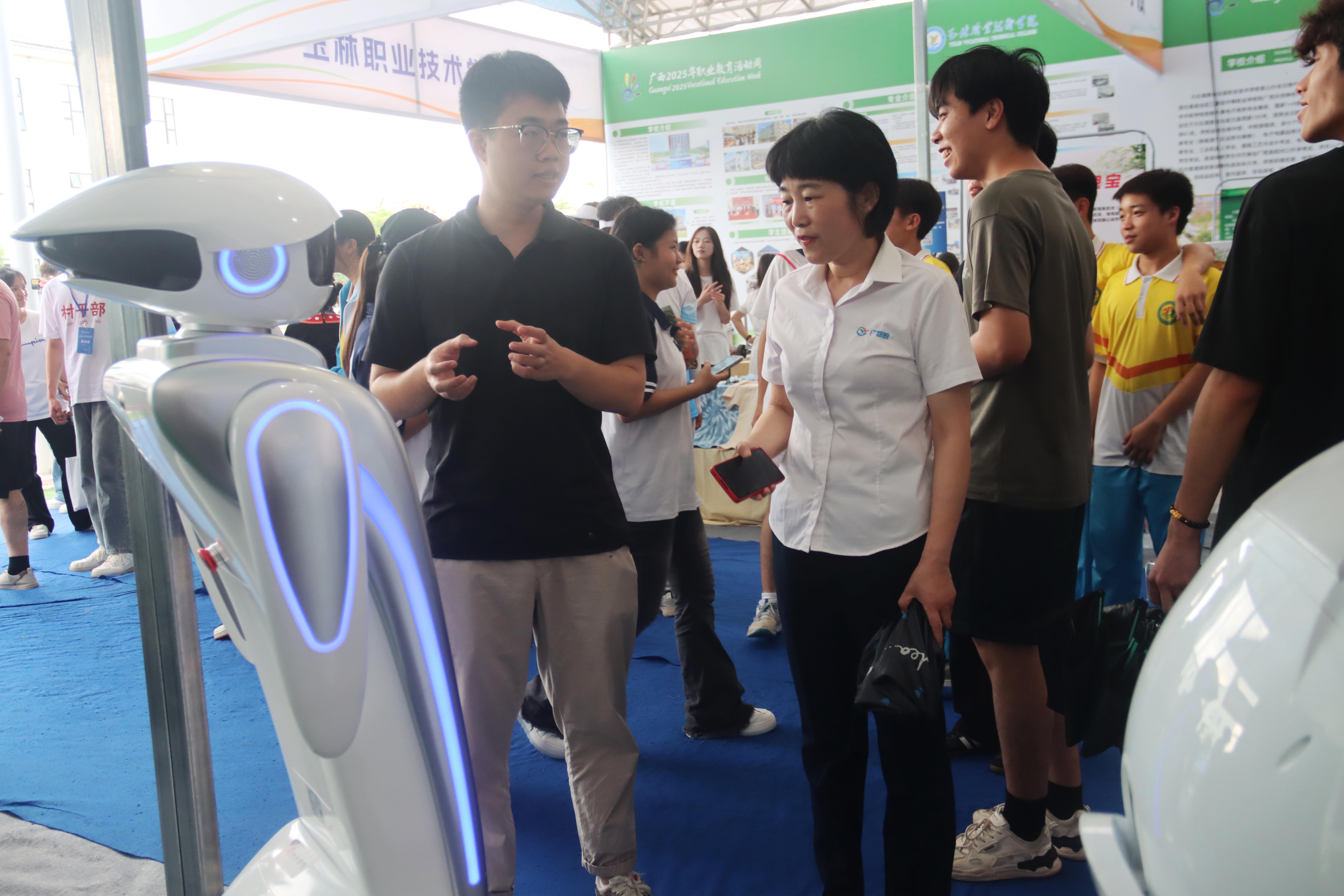 我校展位設(shè)在產(chǎn)教融合展區(qū),以“智創(chuàng)工坊·藝啟未來”為主題,通過展板、實(shí)物、交互活動的形式,以“產(chǎn)教融合、育訓(xùn)結(jié)合”為特色,展示學(xué)校扎根八桂大地,服務(wù)區(qū)域經(jīng)濟(jì),融合傳統(tǒng)非遺技藝與前沿科技應(yīng)用,展現(xiàn)我校職業(yè)教育賦能廣西產(chǎn)業(yè)發(fā)展的創(chuàng)新實(shí)踐。