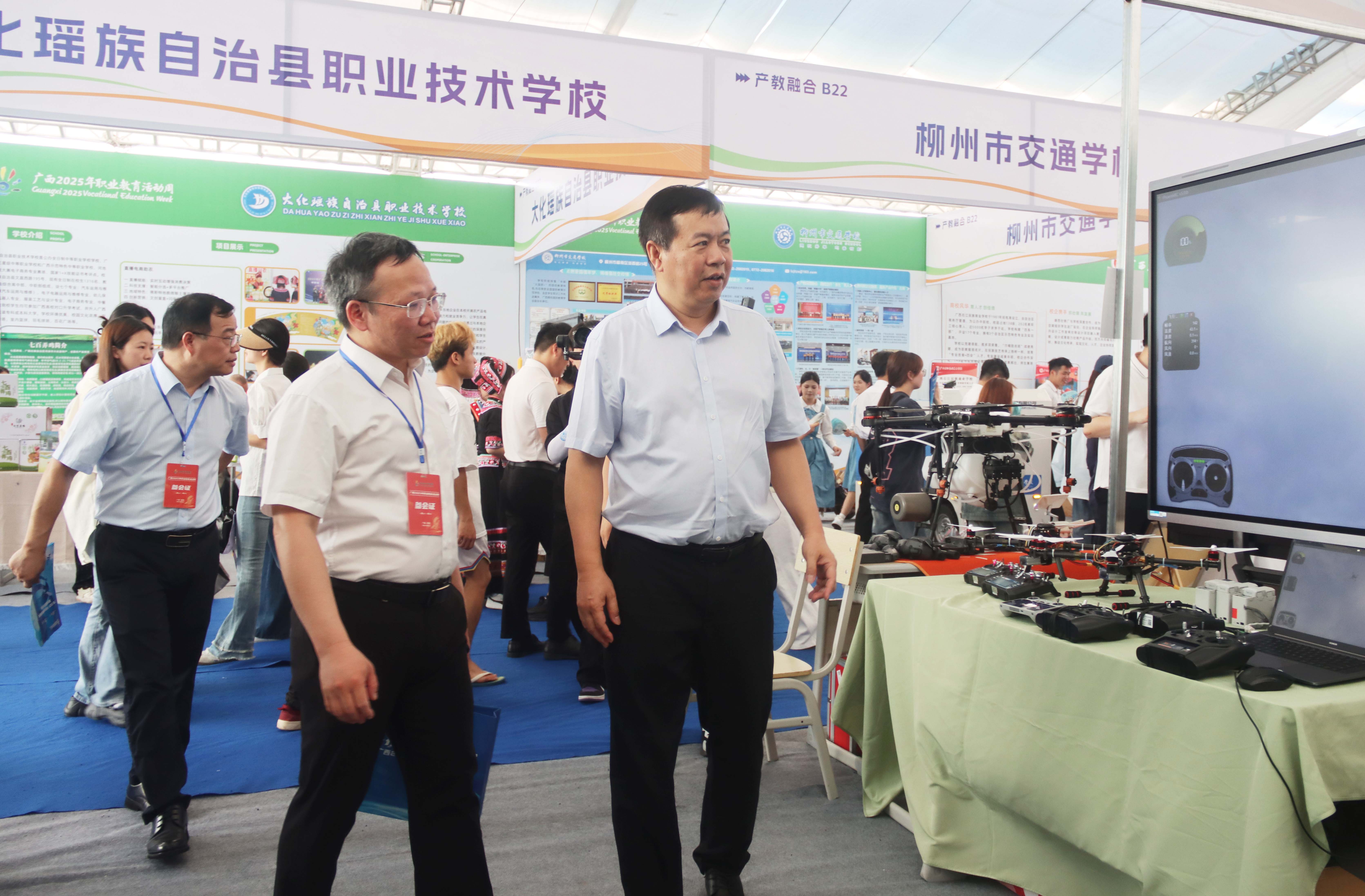 (學(xué)校黨委書記李維、副校長闕勇平在學(xué)校展區(qū)指導(dǎo)工作)