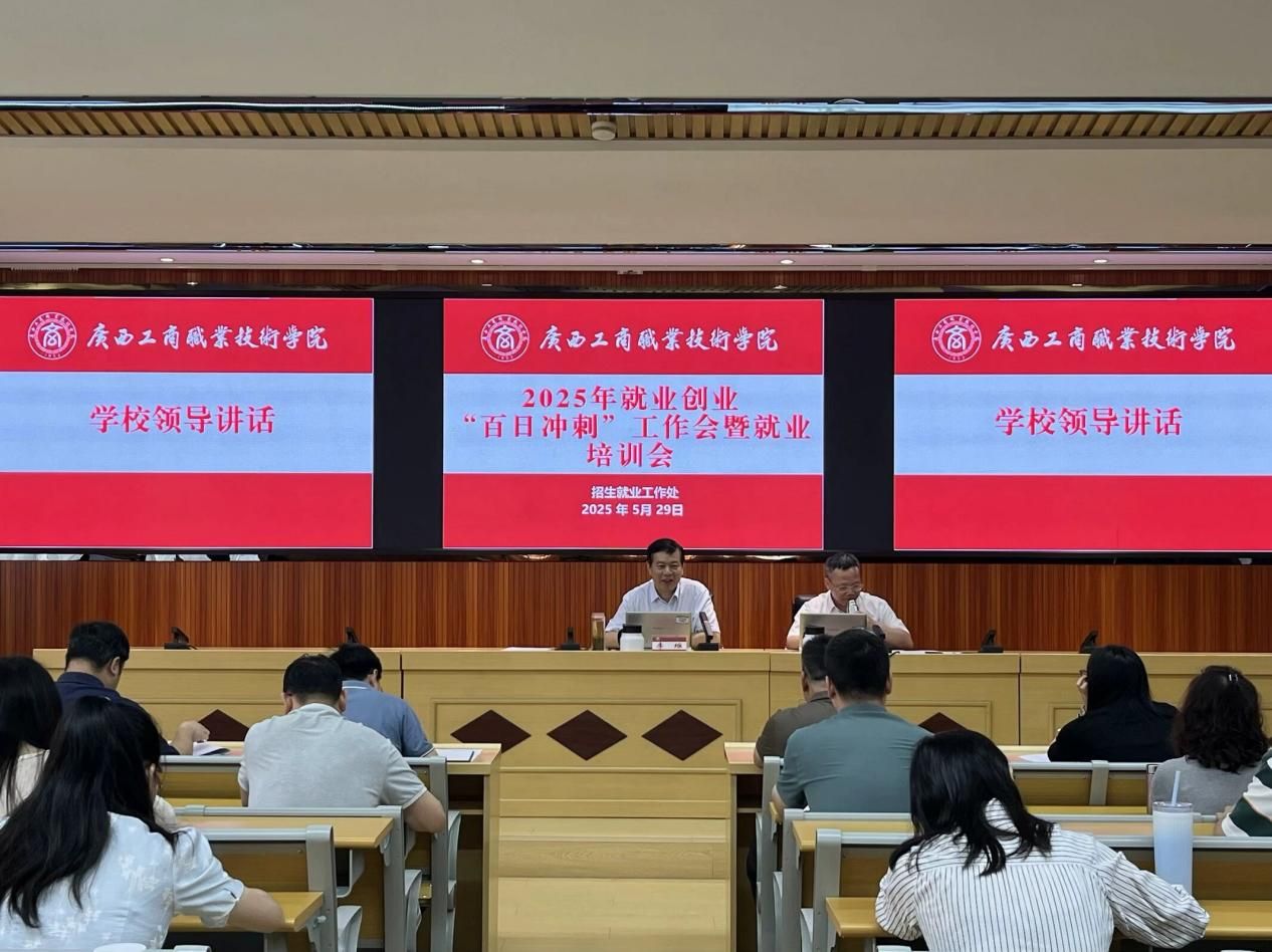 凝心聚力促就業(yè),攻堅克難啟新程。為深入貫徹落實黨中央、國務(wù)院關(guān)于高校畢業(yè)生就業(yè)創(chuàng)業(yè)工作的決策部署,全力推進(jìn)2025屆畢業(yè)生高質(zhì)量充分就業(yè),5月29日上午,學(xué)校召開2025年就業(yè)創(chuàng)業(yè)“百日沖刺”工作會暨就業(yè)培訓(xùn)會。學(xué)校黨委書記李維,副校長闕勇平,各二級學(xué)院黨總支書記、院長、分管就業(yè)工作副院長、畢業(yè)班輔導(dǎo)員、就業(yè)干事及招生就業(yè)工作處全體工作人員參加會議。