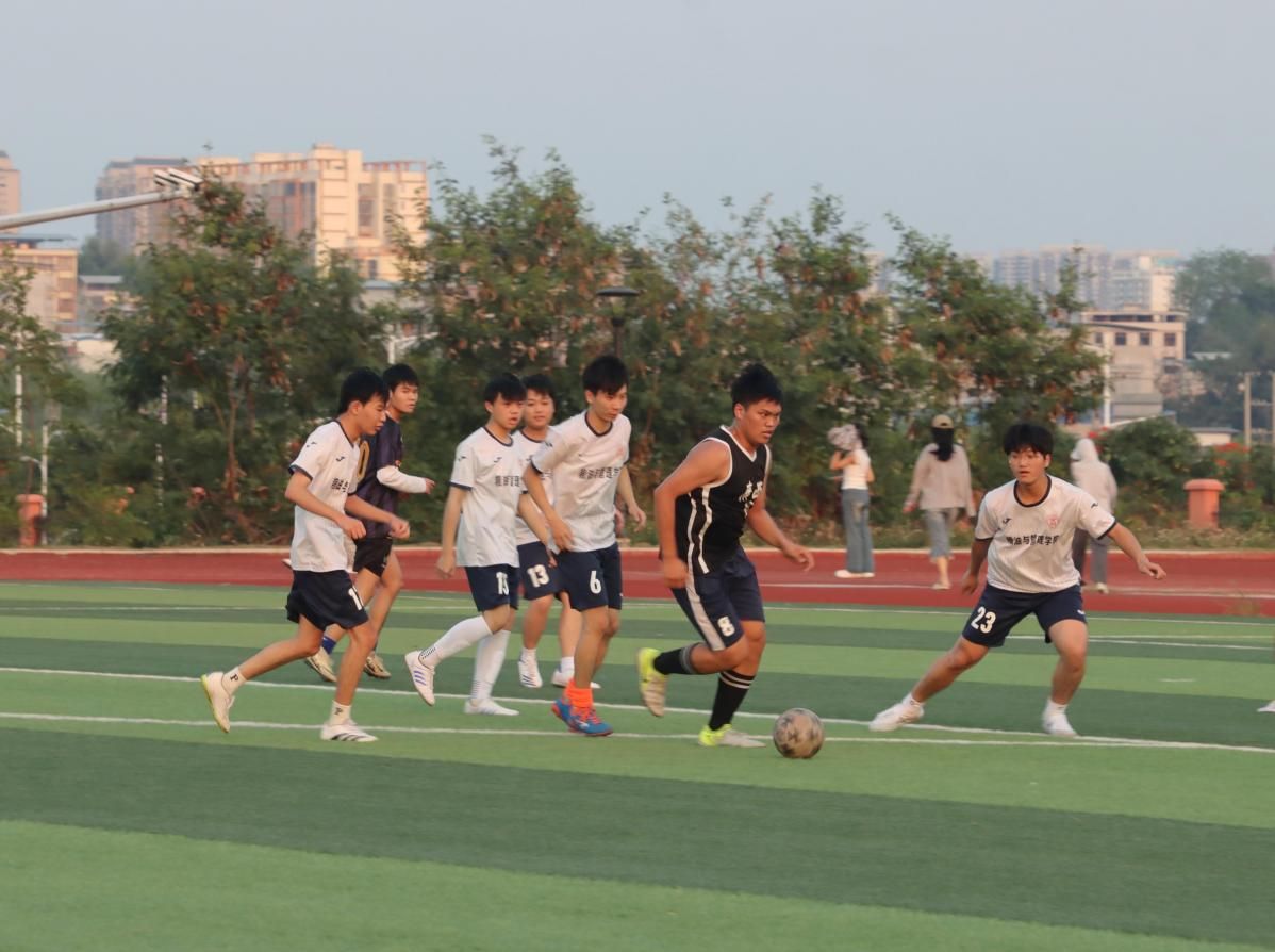 足球比賽時(shí),球員們?cè)诓莸厣霞ち覡?zhēng)奪,肆意揮灑青春汗水。傳球精準(zhǔn),射門(mén)有力,防守嚴(yán)密,攻防展現(xiàn)了團(tuán)隊(duì)智慧和合作精神,觀(guān)眾不斷歡呼鼓掌,為球員加油。