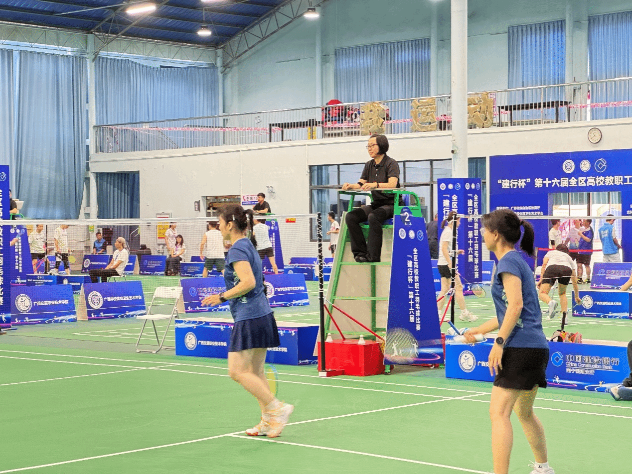 2025年6月5日—8日,由廣西壯族自治區(qū)教育廳指導(dǎo)、廣西學(xué)校體育衛(wèi)生藝術(shù)學(xué)會主辦、廣西交通職業(yè)技術(shù)學(xué)院承辦的“建行杯”第十六屆全區(qū)高校教職工羽毛球比賽在廣西交通職業(yè)技術(shù)學(xué)院昆侖校區(qū)精彩開賽。全區(qū)53所高校658名教職工運動員參與競技,賽事設(shè)置了教職工混合團體賽、校長組單打和雙打賽。學(xué)校校長劉進,黨委副書記、紀委書記韋云鳳,副校長陳寧春等16名教練員、運動員參加。學(xué)校黨委副書記、工會主席安仲文為領(lǐng)隊帶隊參加。