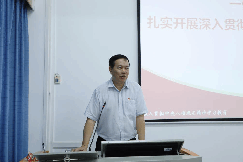 李維書記給全體退休教職工講授了一堂黨課,課上李維書記圍繞中央八項規(guī)定精神,結合學校工作實際,從習近平總書記關于加強黨的作風建設的重要論述、學習領會中央八項規(guī)定精神及其實施規(guī)定細則精神、深入貫徹中央八項規(guī)定精神的成效和經(jīng)驗等方面進行了精準、深刻、生動的講解。深刻闡述了深入貫徹中央八項規(guī)定精神學習教育對于學校推進全面從嚴治黨、加強黨的作風建設的重要意義。