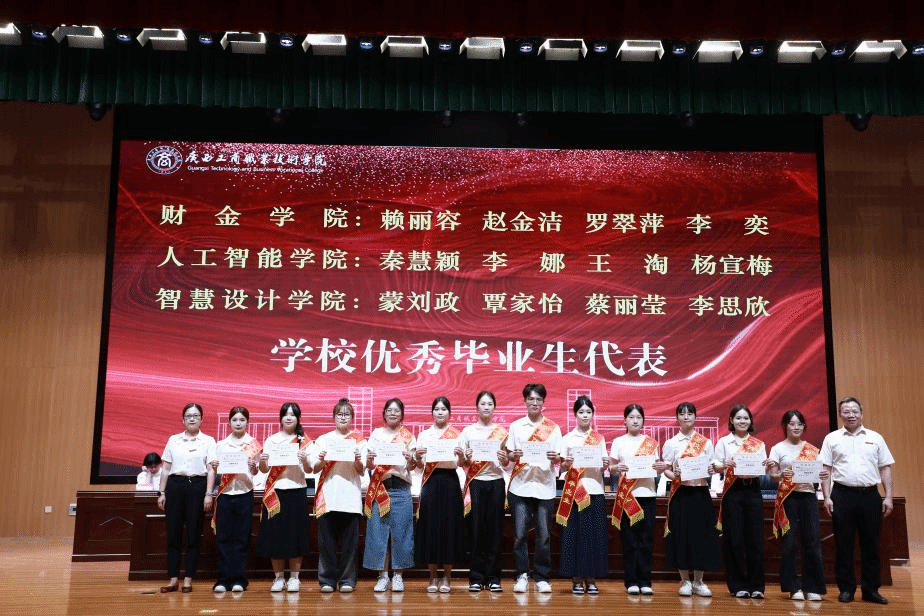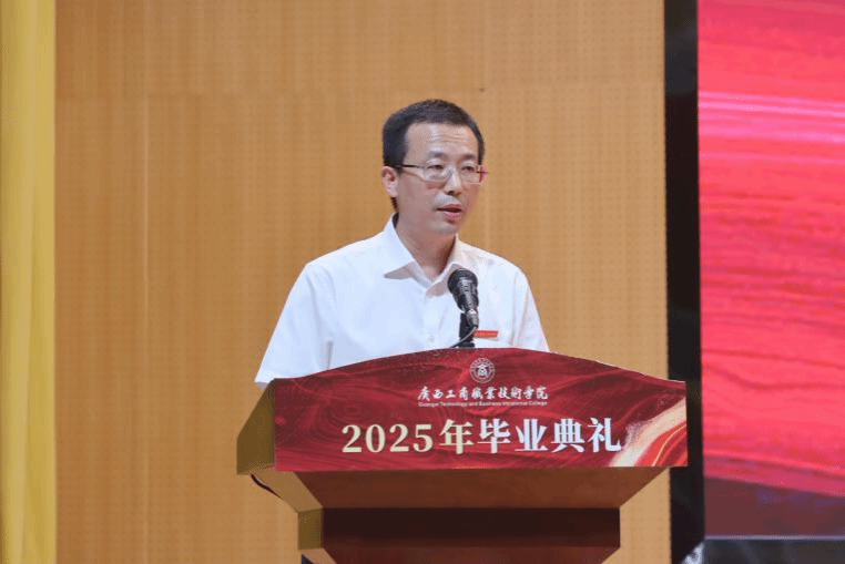 典禮上,闕勇平宣讀2025年畢業(yè)生文件,韋云鳳宣讀優(yōu)秀畢業(yè)生表彰文件,陳寧春宣讀榮獲國(guó)家獎(jiǎng)學(xué)金優(yōu)秀學(xué)生表彰文件。李維為國(guó)家獎(jiǎng)學(xué)金獲獎(jiǎng)學(xué)生代表頒發(fā)榮譽(yù)證書,劉進(jìn)為自治區(qū)級(jí)“優(yōu)秀畢業(yè)生”代表頒發(fā)榮譽(yù)證書、為畢業(yè)生代表頒發(fā)畢業(yè)證書,韋云鳳、陳寧春、闕勇平、鄭華為校級(jí)“優(yōu)秀畢業(yè)生”代表頒發(fā)榮譽(yù)證書。