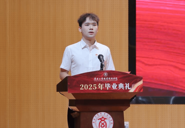 會(huì)計(jì)學(xué)院數(shù)會(huì)2220班韋勇作為畢業(yè)生代表發(fā)言,他表示,學(xué)校永遠(yuǎn)是我們最堅(jiān)實(shí)的后盾,將帶著校訓(xùn)賦予的勇氣與擔(dān)當(dāng),帶著師長(zhǎng)給予的溫暖與力量,在學(xué)術(shù)的海洋中探索真知,在社會(huì)的舞臺(tái)上發(fā)光發(fā)熱。