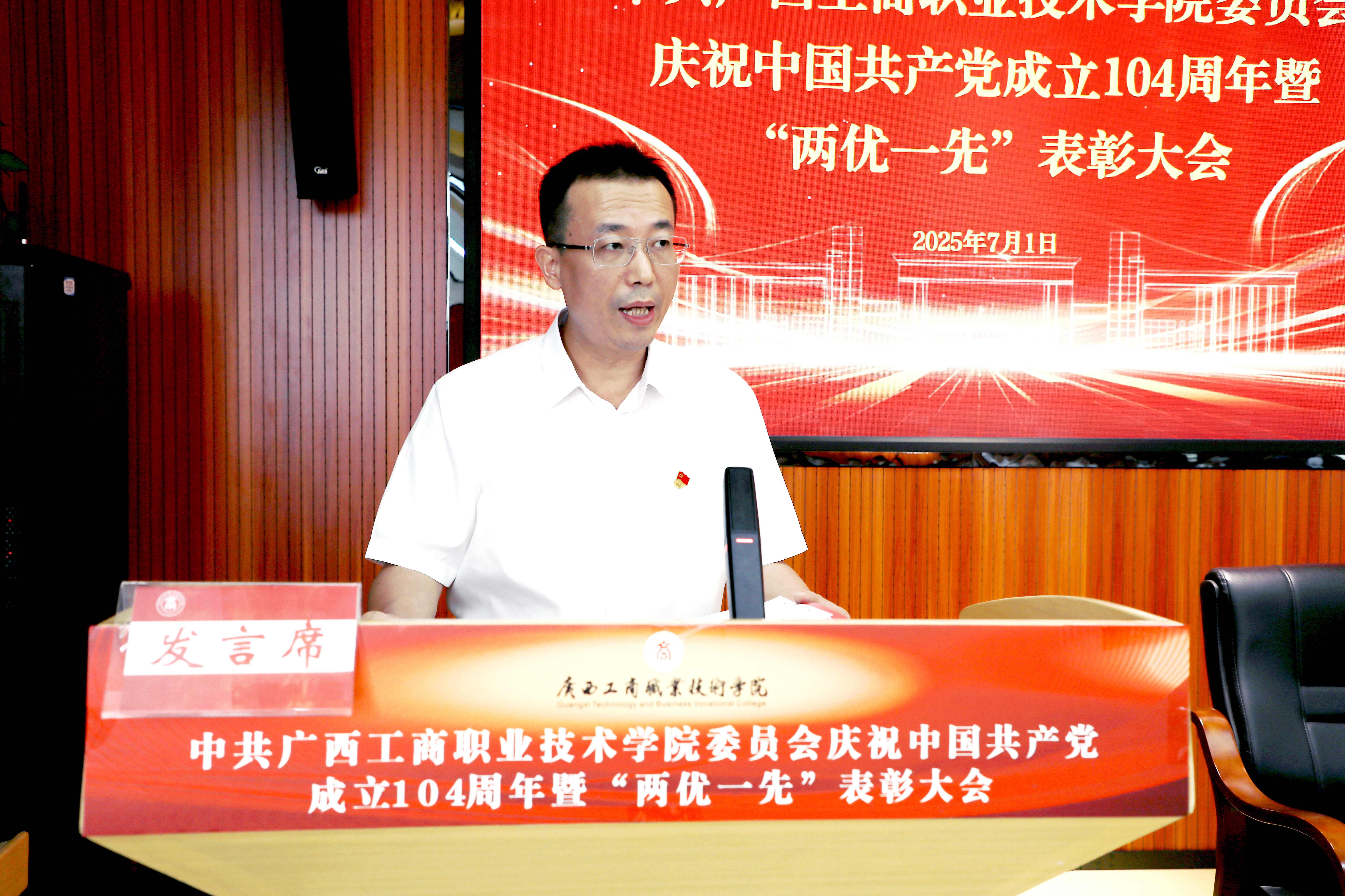 為慶祝中國共產(chǎn)黨成立104周年,回顧黨的光輝歷程,弘揚(yáng)黨的優(yōu)良傳統(tǒng),表彰先進(jìn)、樹立典型,展示新時(shí)代共產(chǎn)黨人的良好形象和精神面貌,7月1日,學(xué)校召開慶祝中國共產(chǎn)黨成立104周年暨“兩優(yōu)一先”表彰大會(huì)。學(xué)校黨委書記李維,黨委副書記、校長劉進(jìn),黨委副書記安仲文,黨委副書記、紀(jì)委書記韋云鳳,副校長陳寧春、鄭華,部分教職工黨員,新發(fā)展黨員代表,離退休黨員代表在主會(huì)場參加會(huì)議,其余教職工黨員在分會(huì)場參會(huì)。大會(huì)由劉進(jìn)主持。