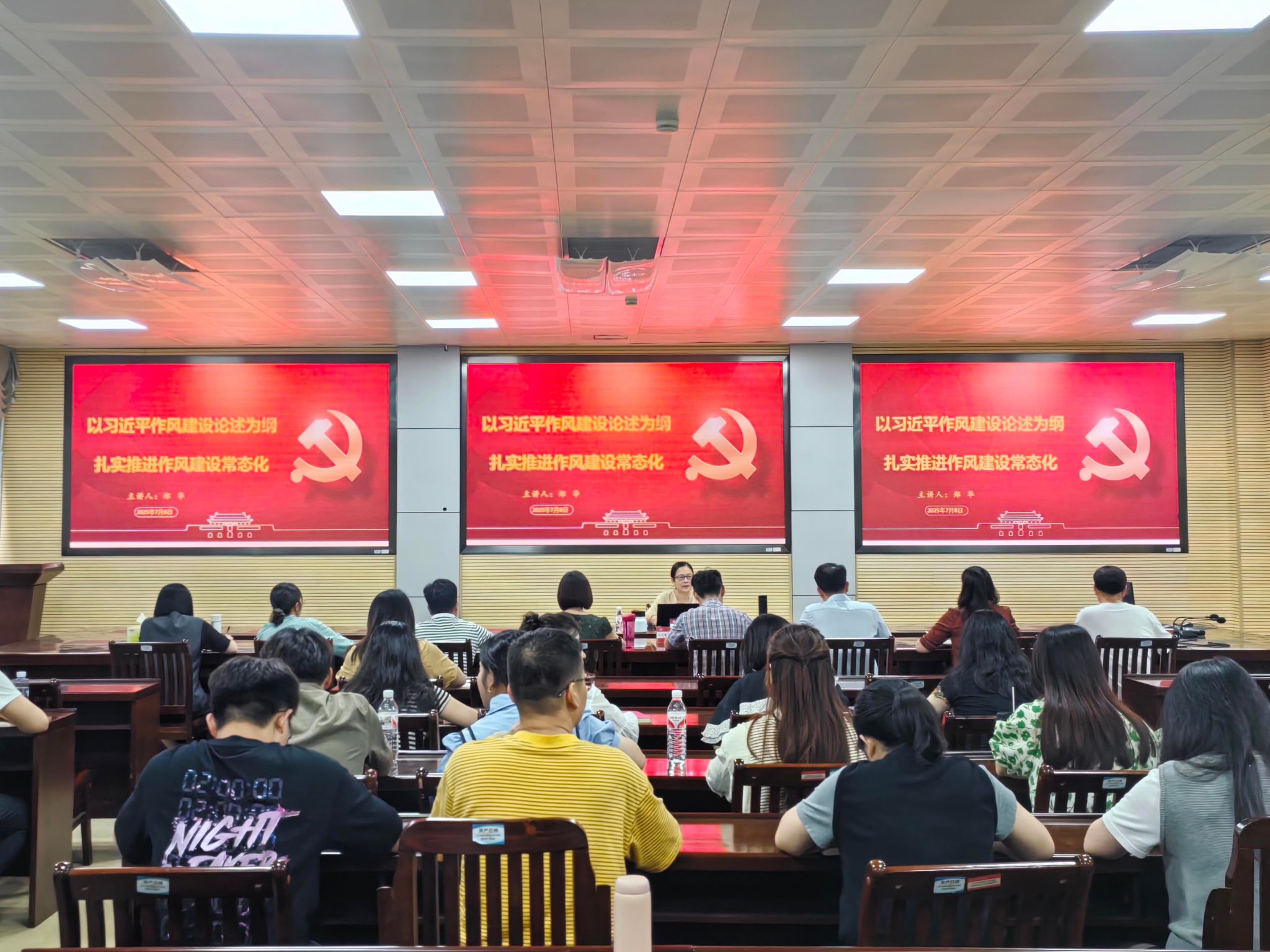 鄭華圍繞習(xí)近平總書記關(guān)于加強黨的作風(fēng)建設(shè)的重要論述,就如何扎實推進作風(fēng)建設(shè)常態(tài)化這一主題展開授課。在講授作風(fēng)建設(shè)的核心要義時,鄭華以92歲高齡宣誓加入中國共產(chǎn)黨的游本昌、以人民教育家張桂梅為例釋義黨員干部如何發(fā)揮黨員先鋒模范作用,以利用人工智能發(fā)展轉(zhuǎn)型點為引積極鼓勵黨員干部利用轉(zhuǎn)折點轉(zhuǎn)變新的模式,進入新的發(fā)展格局。在講授作風(fēng)建設(shè)的重要意義時,鄭華結(jié)合我校第一書記、組團式幫扶干部勇?lián)厝蔚氖论E,教育引導(dǎo)黨員干部要在工作中不打折扣、不找借口、不推責(zé)任,形成干在實處、走在前列的風(fēng)氣。最后,鄭華通過典型案例剖析,結(jié)合財會監(jiān)督與內(nèi)控管理告誡黨員干部是作風(fēng)建設(shè)的關(guān)鍵群體,要以身作則,嚴于律己,抵制特權(quán)思想和行為,管好身邊人,注重家風(fēng)建設(shè),追求健康生活方式。
