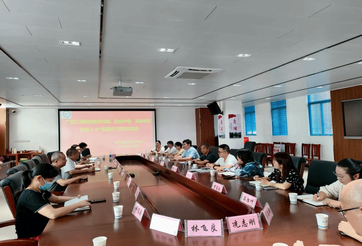 2025年8月23日,學(xué)校黨委副書(shū)記安仲文率隊(duì)送我校彭月玉、練東曦、羅氰獻(xiàn)等3名幫扶干部前往昭平縣職業(yè)技術(shù)學(xué)校報(bào)到,并參加教育人才“組團(tuán)式”幫扶交流會(huì)。