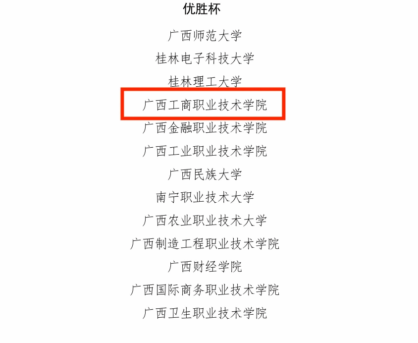 第十二屆 “挑戰(zhàn)杯” 廣西大學(xué)生課外學(xué)術(shù)科技作品競賽已于近日圓滿落幕,此次競賽中,我校共有26個項(xiàng)目獲獎,其中,獲特等獎7項(xiàng)、一等獎5項(xiàng)、二等獎7項(xiàng)、三等獎7項(xiàng),并再次獲得“優(yōu)勝杯”1項(xiàng)和優(yōu)秀組織獎1項(xiàng)。我校特等獎獲獎數(shù)量在全區(qū)高校中位列第四,團(tuán)隊(duì)總獲獎數(shù)位居全區(qū)高職高專學(xué)校首位。