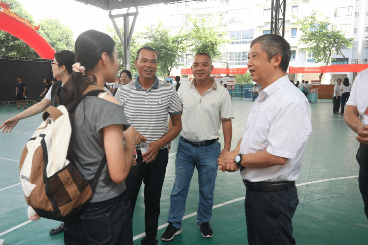 (學(xué)校副校長(zhǎng)闕勇平(右三)在武鳴校區(qū)與新生交談)