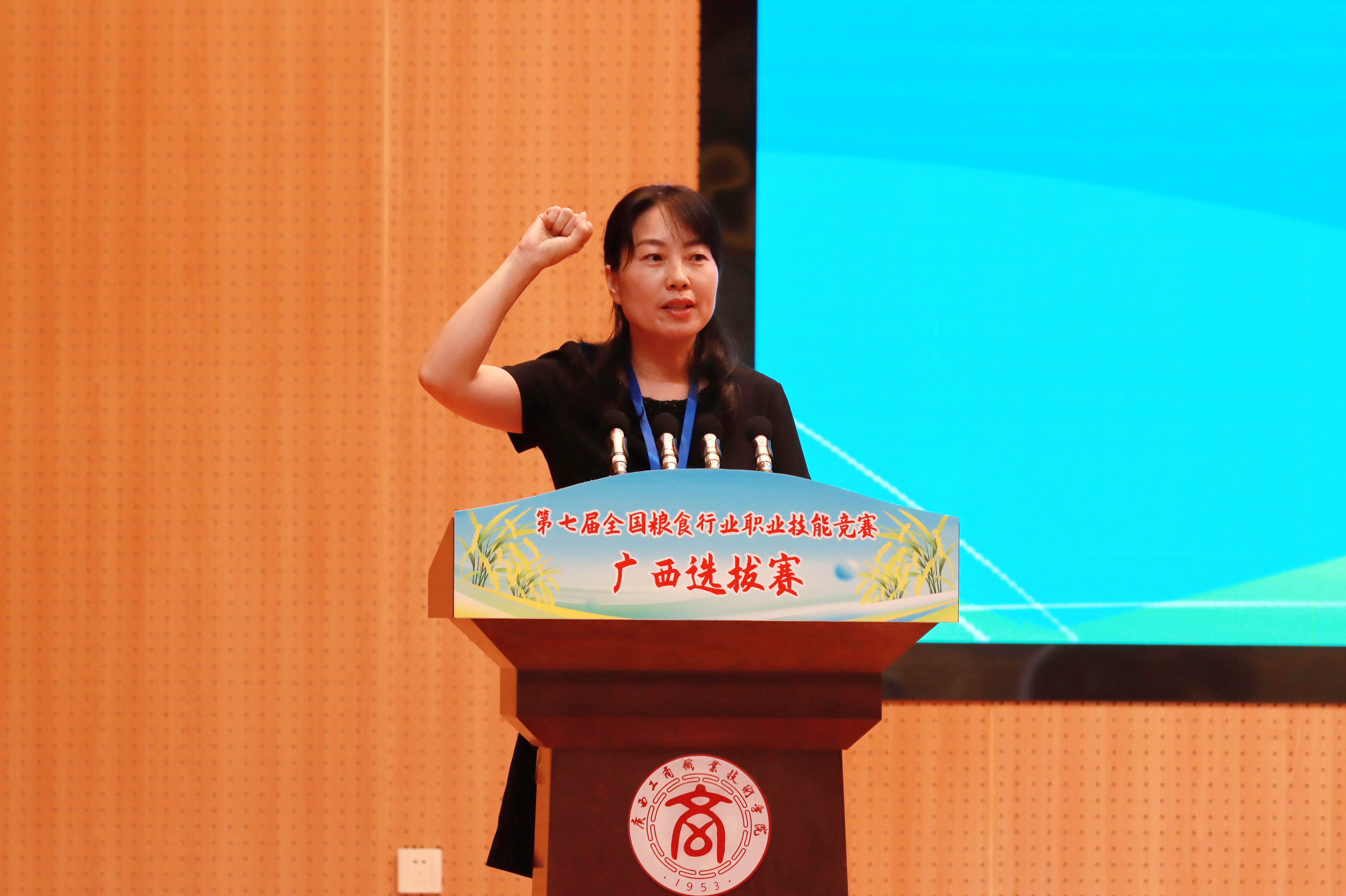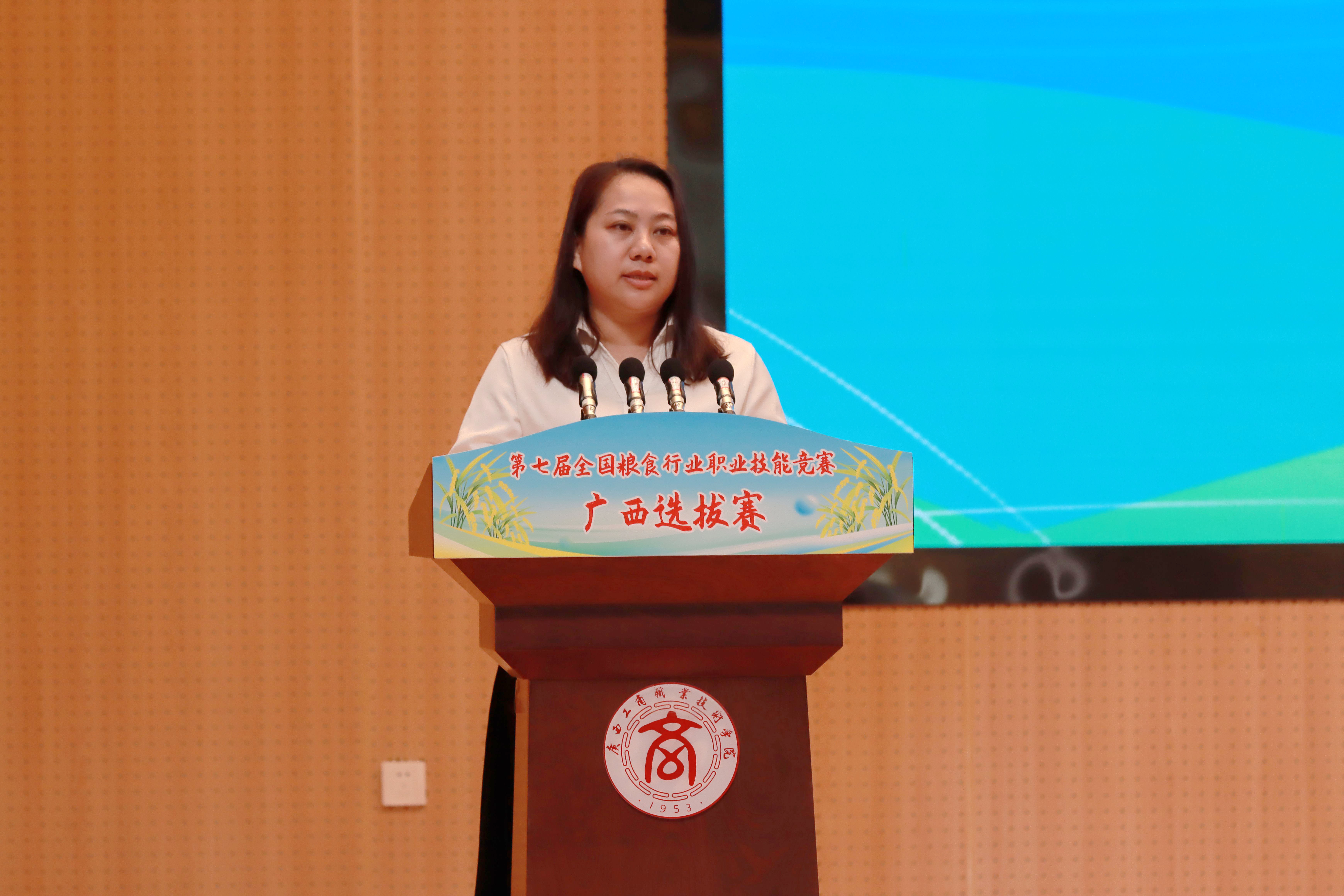 廣西工商職業(yè)技術(shù)學院副校長闕勇平致歡迎詞,他指出,學校作為廣西唯一一所開辦糧食專業(yè)的高職院校,緊扣國家糧食安全戰(zhàn)略和廣西糧食行業(yè)、地方經(jīng)濟社會發(fā)展的需要,堅持“以糧立商、以商興糧,把糧做精、把商做強”,全力打造“糧·商”特色鮮明的技術(shù)技能人才培養(yǎng)高地。作為此次選拔賽承辦單位,學校將以高度的責任心和嚴謹細致的作風,全力以赴做好賽事的各項服務保障,確保競賽各項工作有序、高效、高質(zhì)量開展。