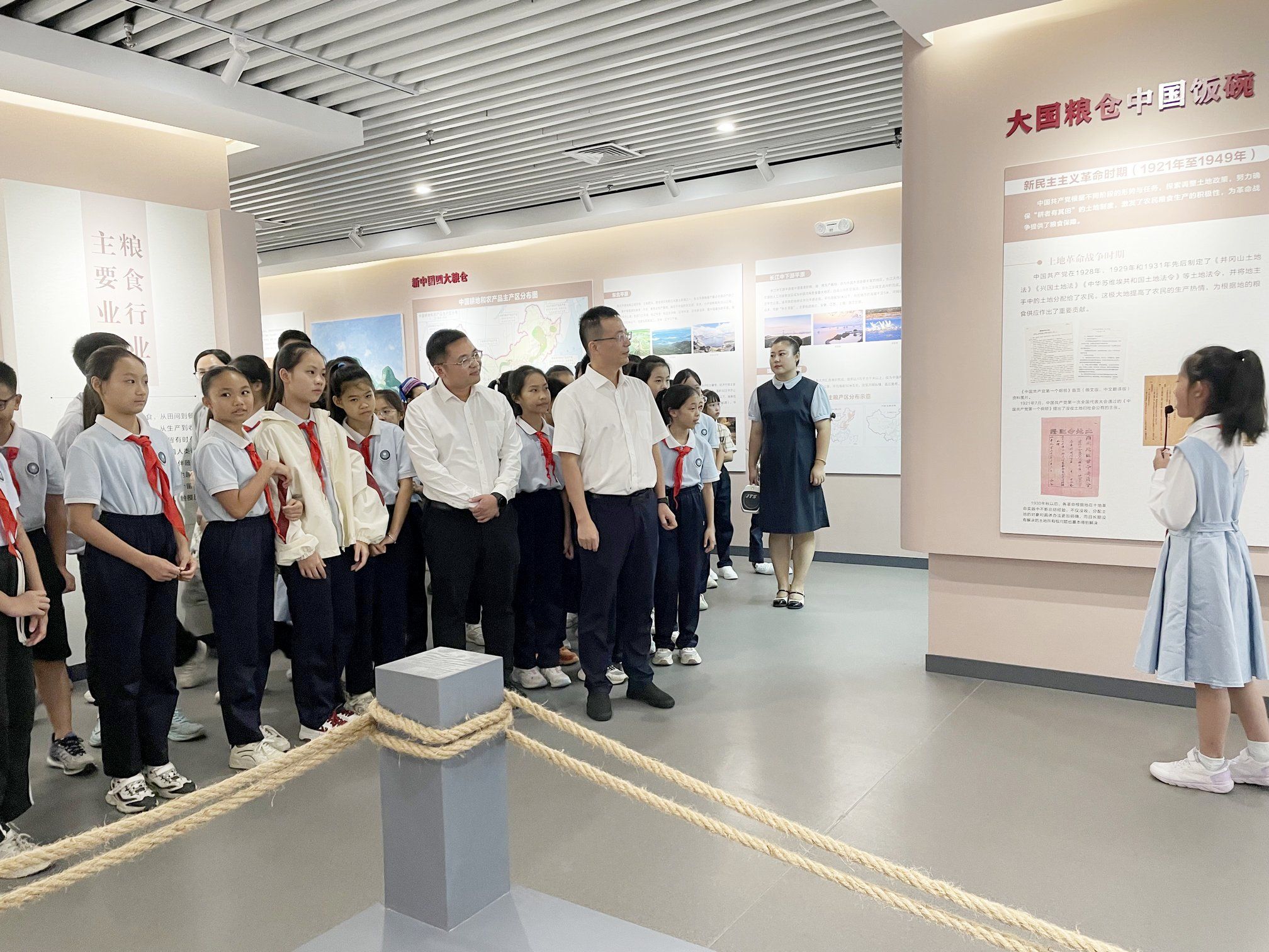 活動結(jié)束后,與會人員共同參觀了糧食文化館。在紅領(lǐng)巾講解員和大學(xué)生志愿者的引導(dǎo)下,大家通過豐富的圖文史料和實物陳列,深入了解我國糧食事業(yè)發(fā)展的輝煌歷程和深厚文化底蘊(yùn),深刻感受從“吃不飽”到“吃得好”的歷史性飛躍,進(jìn)一步堅定了賡續(xù)奮斗、保障國家糧食安全的信心和決心。