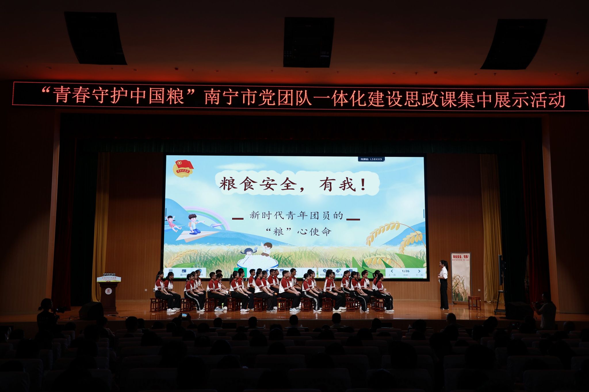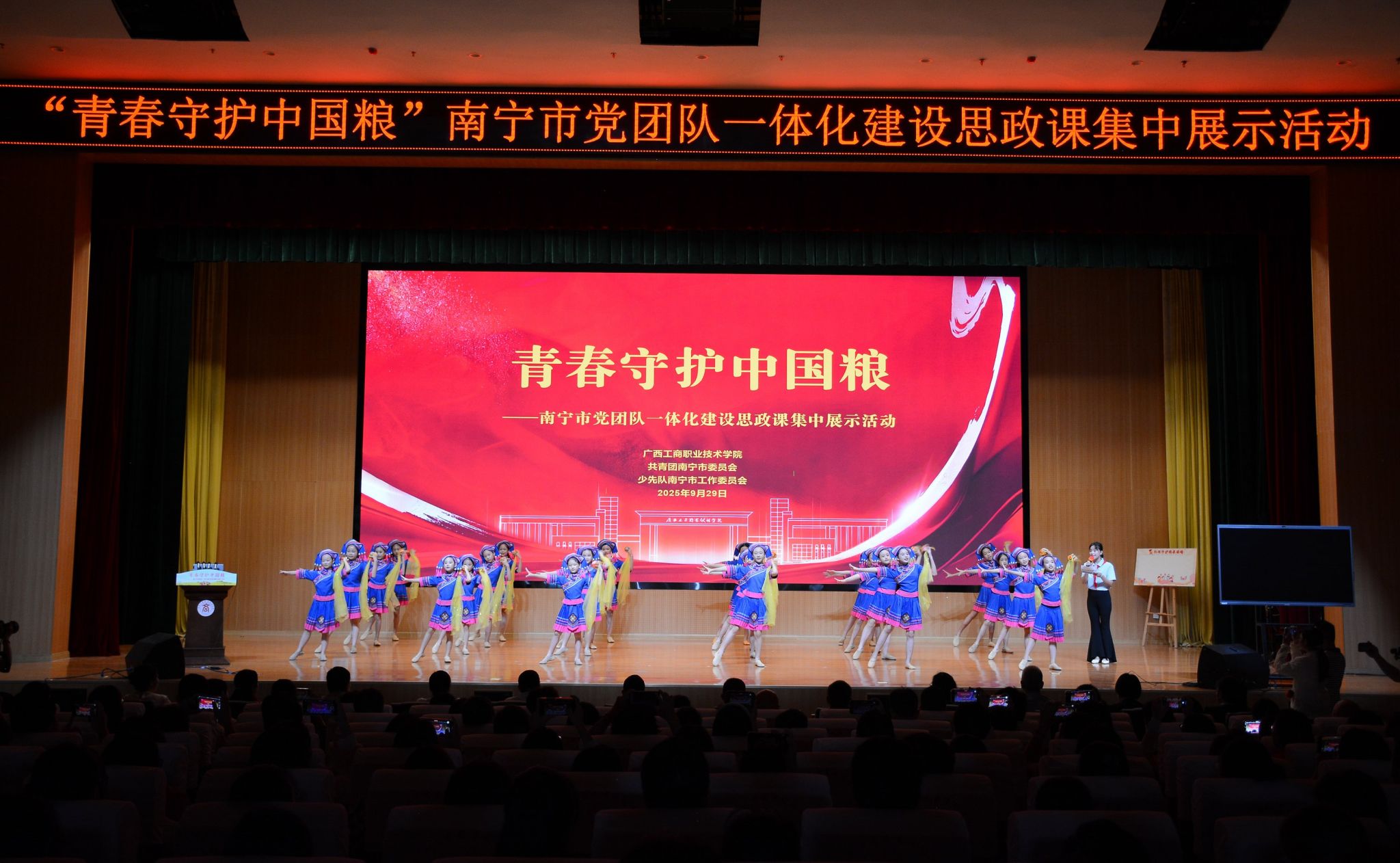 9月29日上午,以“青春守護(hù)中國糧”為主題的南寧市黨團(tuán)隊一體化建設(shè)思政課集中展示活動在我校成功舉辦。本次活動由廣西工商職業(yè)技術(shù)學(xué)院、共青團(tuán)南寧市委、少先隊南寧市工作委員會共同主辦,旨在深入推動習(xí)近平總書記關(guān)于糧食安全的重要指示精神在青少年群體中落地生根,積極探索貫通“小學(xué)—中學(xué)—大學(xué)”的黨團(tuán)隊一體化思政育人新模式,強(qiáng)化廣大青少年對糧食安全戰(zhàn)略的認(rèn)知與責(zé)任感。