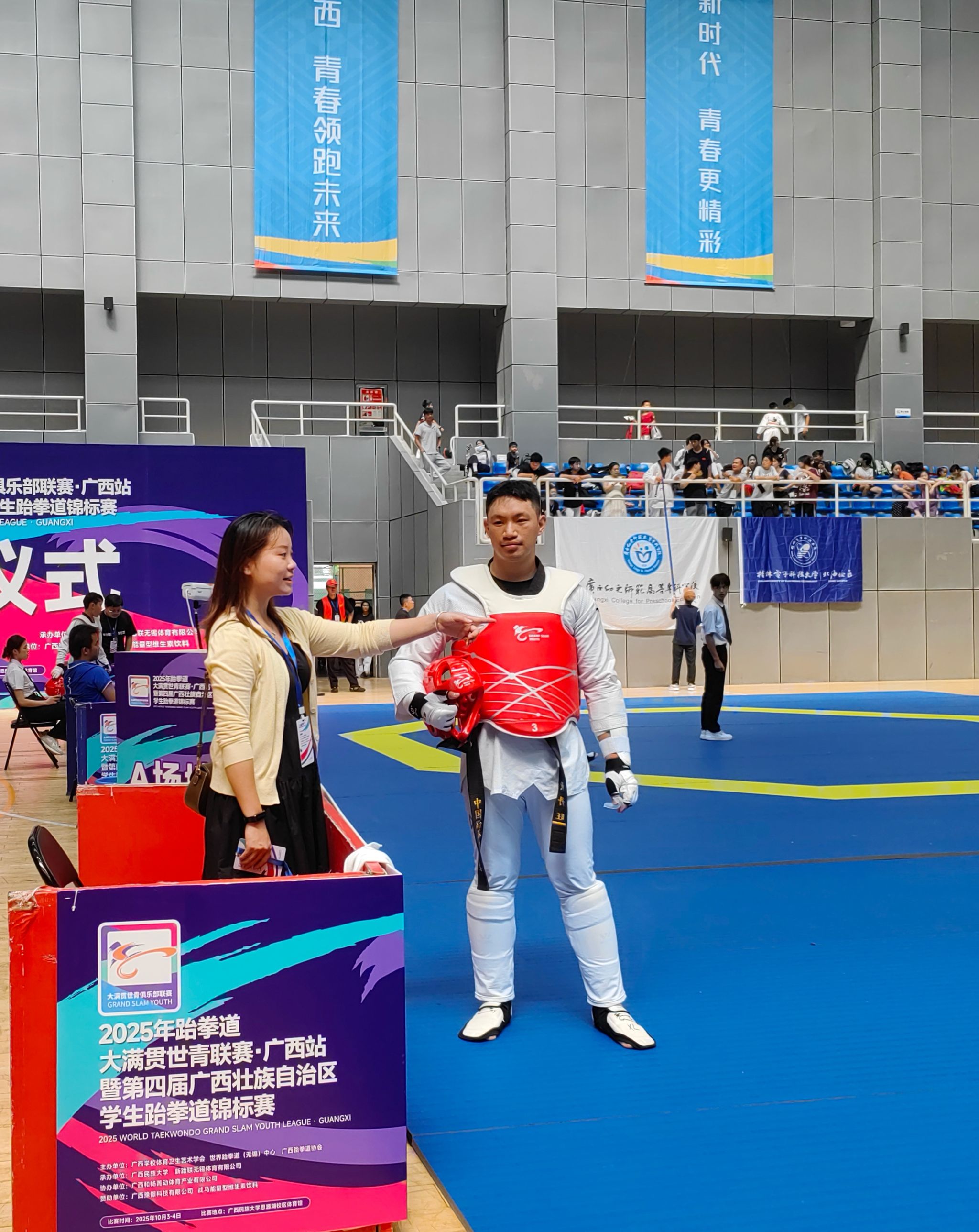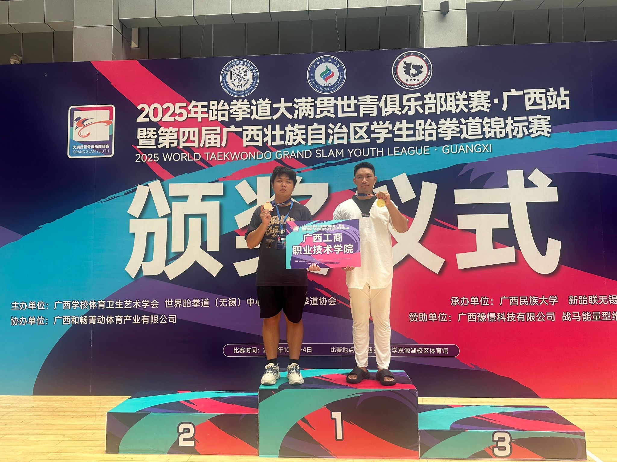 2025年10月3日至4日,在廣西民族大學(xué)(思源湖校區(qū))舉辦的跆拳道大滿貫世青聯(lián)賽(廣西站)暨第四屆廣西學(xué)生跆拳道錦標(biāo)賽中,我校代表隊斬獲金、銀雙牌及團(tuán)體三等獎。