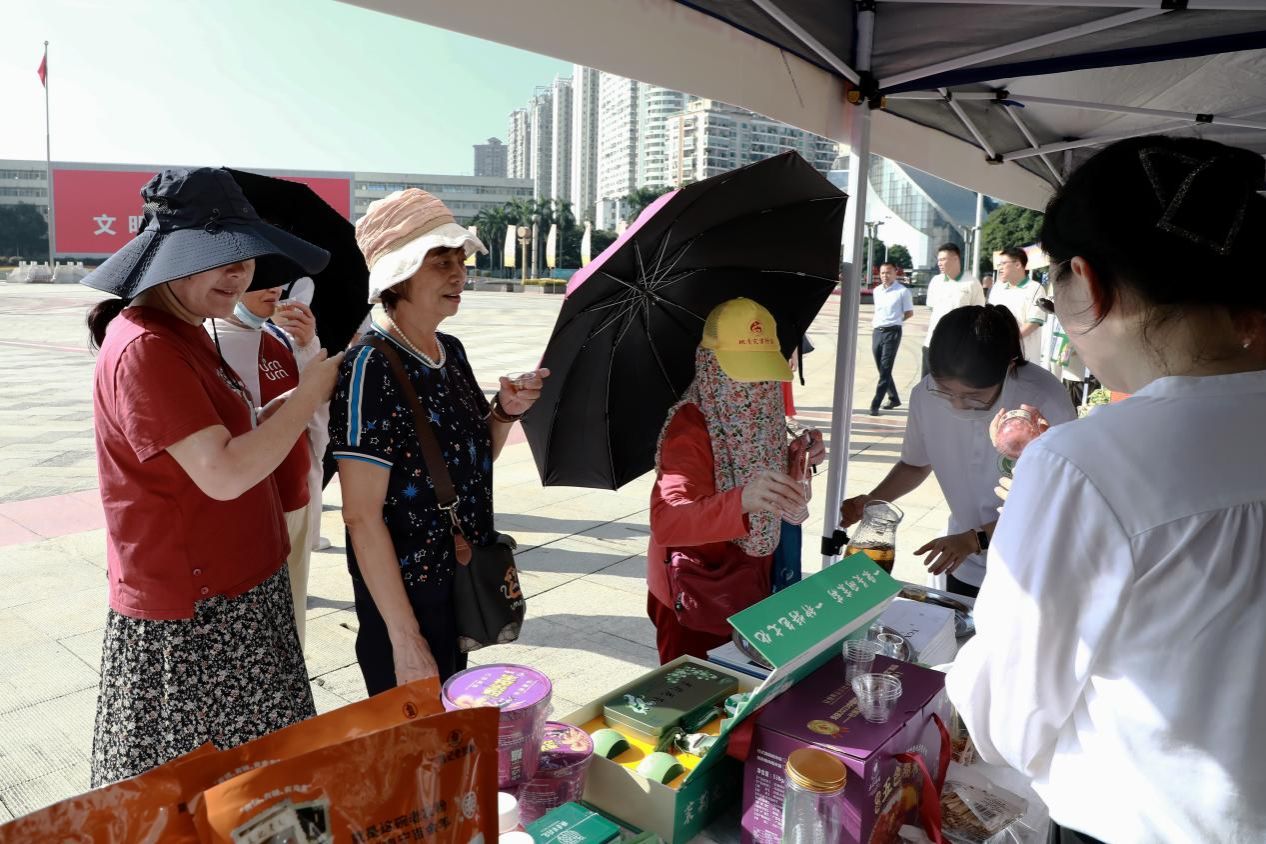 啟動儀式結束后,與會領導嘉賓到我校展區(qū)參觀,詳細了解我校展出的特色產(chǎn)品并進行品嘗,對我校展區(qū)的各項內容給予了高度評價。此外,我校展區(qū)也獲得了現(xiàn)場眾多市民的青睞,紛紛前來參觀和品嘗,得到了大家的一致好評。