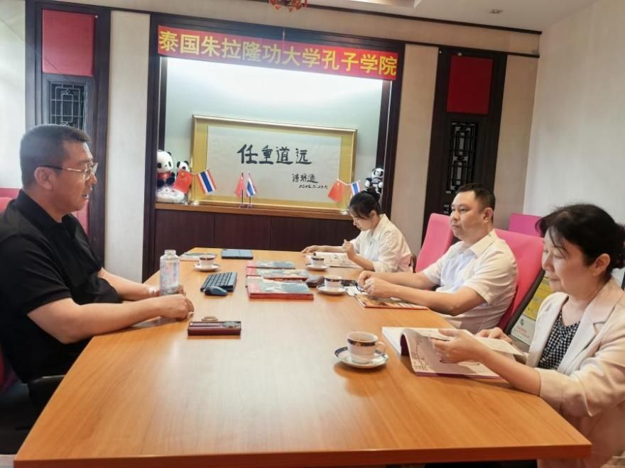 代表團(tuán)與泰國(guó)朱拉隆功大學(xué)孔子學(xué)院韓圣龍?jiān)洪L(zhǎng)交流