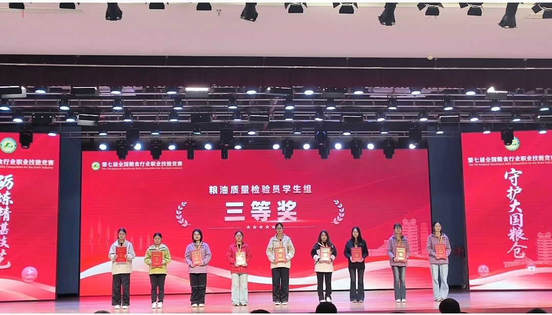11月6日,第七屆全國糧食行業(yè)職業(yè)技能競賽圓滿落幕,我校參賽學(xué)生石又文、王瓊銳、馬海雯憑借扎實的專業(yè)功底、精湛的實操技能與頑強的抗壓能力,歷經(jīng)兩天的實操比拼、理論考核等多輪角逐,最終從來自全國30個?。▍^(qū)、市)34支代表隊的354名選手中脫穎而出,斬獲(糧油)倉儲管理員職業(yè)高職學(xué)生組三等獎(指導(dǎo)教師:韓蓉、張罡睿)和農(nóng)產(chǎn)品食品檢驗員職業(yè)高職學(xué)生組三等獎(指導(dǎo)教師:李小媚、黃蘇迪),學(xué)校榮獲優(yōu)秀院校獎。