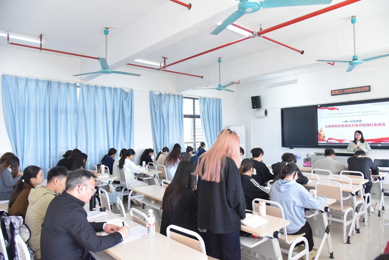 專題課后,闕勇平副校長聽取了韋慧妮老師為人力2403班講授的專題思政課——《以保障和改善民生為重點加強社會建設》。韋慧妮老師圍繞“民生問題為什么如此重要?怎樣讓老百姓的日子越過越好?怎樣推進社會治理現(xiàn)代化?”等核心問題,結(jié)合歷史典故、時事熱點和自身經(jīng)歷進行生動講解,引導學生理解民生建設的重要意義,切實提升了學生的價值認同和社會責任感。