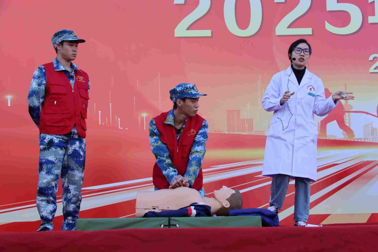 疏散演練后,現(xiàn)場開展了一系列豐富實用的安全主題活動,組織了校園防暴演練,并特別邀請消防宣傳員,為學(xué)校師生講解消防器材的使用方法、火災(zāi)的危險性、防火的應(yīng)對與逃生自救等知識。并現(xiàn)場示范使用滅火器的使用方法,在實操體驗中,通過讓學(xué)生自己體驗滅火器的使用方式,使其掌握正確的滅火方法和滅火技巧。組織滅火器規(guī)范使用實操演練錘煉技能,增設(shè)消防模擬逃生屋沉浸式體驗強化感受。醫(yī)護人員現(xiàn)場為大家科普相關(guān)急救知識,強調(diào)急救“黃金四分鐘”的重要性,現(xiàn)場模擬心肺復(fù)蘇操作演示。