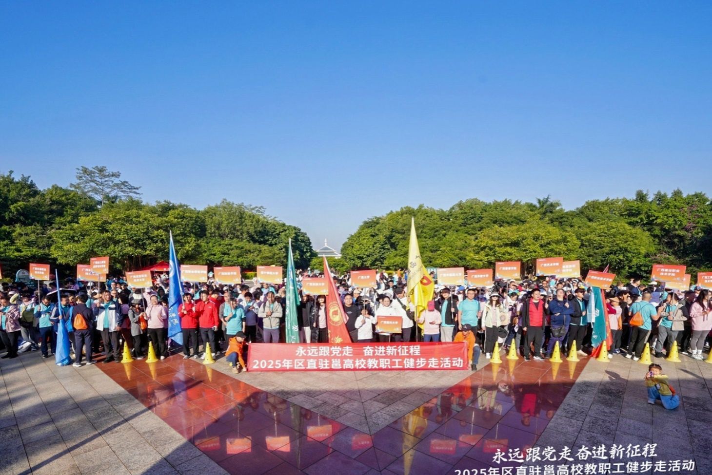 11月29日上午,由自治區(qū)教育工會(huì)委員會(huì)主辦的“永遠(yuǎn)跟黨走 奮進(jìn)新征程”2025年區(qū)直駐邕高校教職工健步走活動(dòng)在南寧青秀山舉行,全區(qū)31所高校的近700名教職工參加活動(dòng)。我校工會(huì)積極組織教職工踴躍參與健步走活動(dòng),展現(xiàn)了學(xué)校教職工昂揚(yáng)向上的精神風(fēng)貌。
