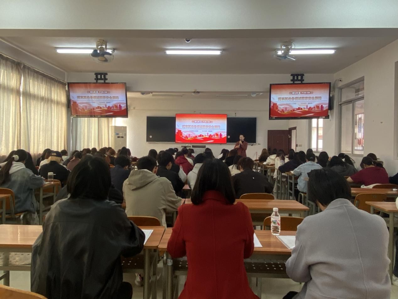 12月8日上午,韋云鳳深入“國(guó)家安全教育”課堂,聽取滕敏娟老師為室內(nèi)2403班、室內(nèi)2404班學(xué)生講授第七專題《筑牢其他各領(lǐng)域國(guó)家安全屏障》思政課。授課過程中,滕老師圍繞國(guó)土安全、生態(tài)安全、資源安全、國(guó)家網(wǎng)絡(luò)安全、核安全等各領(lǐng)域進(jìn)行了系統(tǒng)講授,通過理論講解、案例分析、主題討論等豐富的教學(xué)方式,培養(yǎng)學(xué)生維護(hù)各領(lǐng)域國(guó)家安全的責(zé)任感和能力。