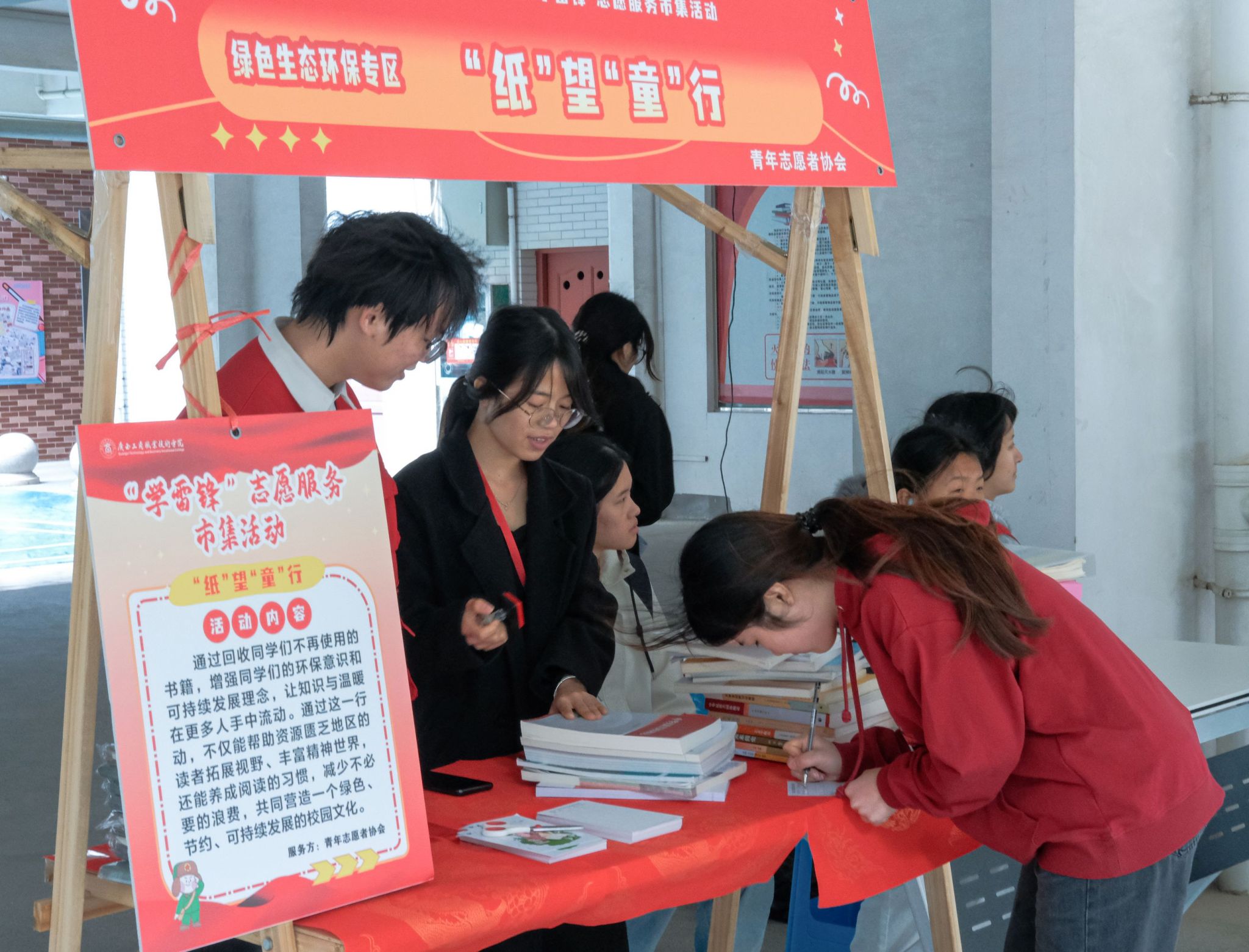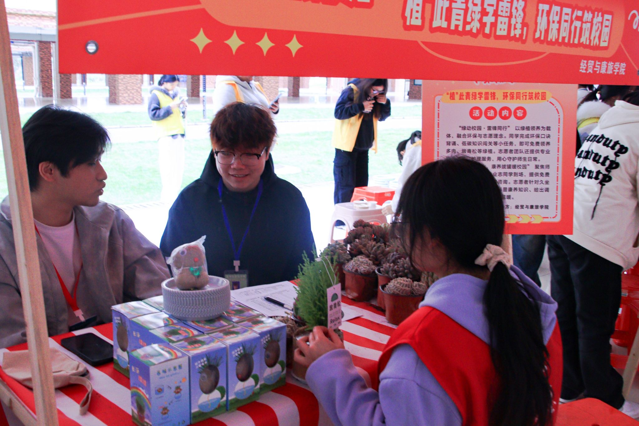 踐行習(xí)近平生態(tài)文明思想,“綠色生態(tài)環(huán)保專區(qū)”用實(shí)際行動(dòng)為春天增添綠意。青年志愿者協(xié)會(huì)在三校區(qū)同步開展“‘紙’望‘童’行”舊書回收活動(dòng),通過(guò)回收同學(xué)們不再使用的書籍,增強(qiáng)環(huán)保意識(shí),讓知識(shí)與溫暖在更多人手中流動(dòng)。經(jīng)貿(mào)與康旅學(xué)院在開展“‘植’此青綠學(xué)雷鋒,環(huán)保同行筑校園”活動(dòng),設(shè)置垃圾分類挑戰(zhàn)賽、廢舊物品回收兌換、環(huán)保手作課堂、環(huán)保倡議簽名等環(huán)節(jié),并開展眼鏡清洗服務(wù)和康養(yǎng)拔罐體驗(yàn)。智慧設(shè)計(jì)學(xué)院開展“紙盒換綠植”活動(dòng),同學(xué)們可用干凈無(wú)破損的紙盒換取綠植,共同推動(dòng)綠色校園的可持續(xù)發(fā)展。