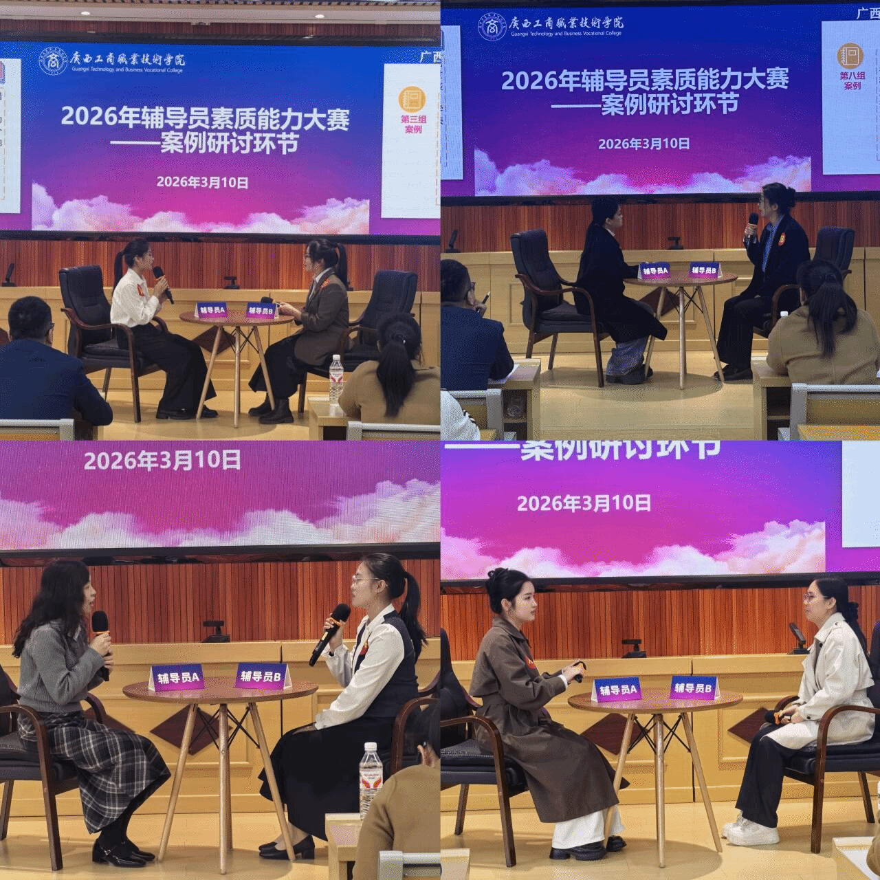 本次大賽由學(xué)校黨委學(xué)生工作部統(tǒng)籌組織,設(shè)置基礎(chǔ)知識測試、學(xué)情分析、案例研討、談心談話四個(gè)環(huán)節(jié),全面考察輔導(dǎo)員隊(duì)伍的理論素養(yǎng)、業(yè)務(wù)能力和實(shí)戰(zhàn)水平。1月14日,基礎(chǔ)知識測試和學(xué)情分析環(huán)節(jié)在鵬飛校區(qū)率先開展,采用閉卷作答方式,重點(diǎn)檢驗(yàn)輔導(dǎo)員對理論知識的掌握程度,以及運(yùn)用數(shù)據(jù)分析開展學(xué)生情況研判與精準(zhǔn)施策的能力。根據(jù)兩個(gè)環(huán)節(jié)的綜合得分,共有18名選手脫穎而出,晉級案例研討和談心談話環(huán)節(jié)決賽。3月10日,案例研討環(huán)節(jié)以“互問互答”的方式開展,參賽選手圍繞學(xué)生思想引領(lǐng)、學(xué)業(yè)指導(dǎo)、心理疏導(dǎo)、危機(jī)事件應(yīng)對等工作中的典型案例,相互提問并作答,聚焦問題本質(zhì)、理清解決思路、總結(jié)規(guī)律經(jīng)驗(yàn),充分展現(xiàn)輔導(dǎo)員分析問題、研判問題、解決問題的綜合能力。3月13日,談心談話環(huán)節(jié)模擬真實(shí)工作場景,參賽選手與學(xué)生演員圍繞學(xué)業(yè)困惑、人際沖突、情感困擾、就業(yè)壓力等話題開展面對面溝通,通過傾聽共情、價(jià)值引導(dǎo)、策略建議等方式,展現(xiàn)輔導(dǎo)員的溝通技巧和育人溫度。