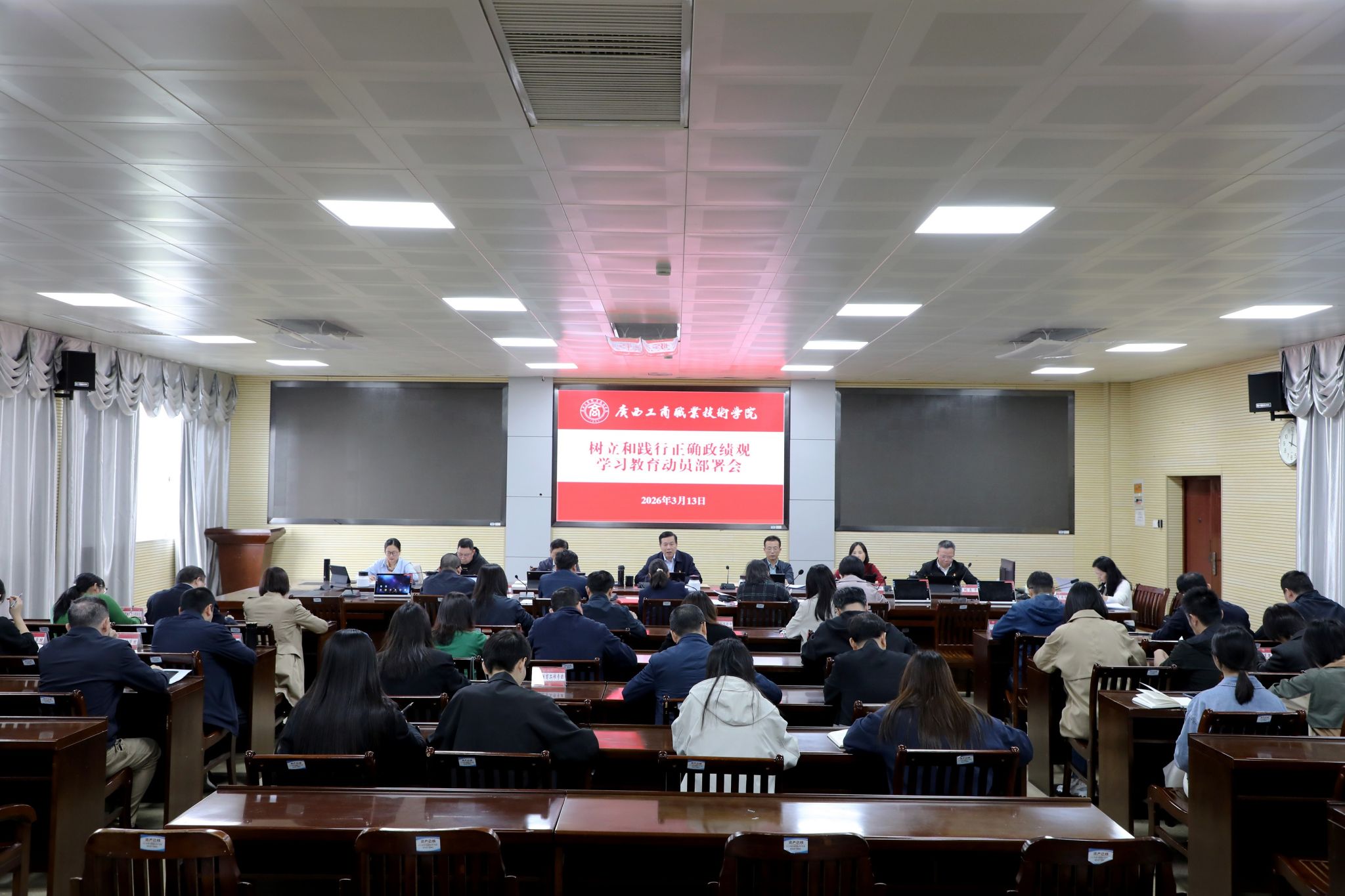 會議要求,要壓緊壓實責(zé)任,以嚴(yán)實作風(fēng)確保學(xué)習(xí)教育落地見效。要強化組織領(lǐng)導(dǎo),壓實工作責(zé)任,學(xué)習(xí)教育工作專班要統(tǒng)籌推進學(xué)校學(xué)習(xí)教育各項工作,學(xué)校主要負(fù)責(zé)同志、學(xué)校領(lǐng)導(dǎo)班子成員、各級黨組織書記要切實履行責(zé)任,帶頭一體化推動學(xué)查改各項措施落實;要強化督促指導(dǎo),確保精準(zhǔn)實效,學(xué)習(xí)教育工作專班要加強對學(xué)習(xí)教育全過程的指導(dǎo)和督促檢查,推動學(xué)習(xí)教育各項要求落到實處;要聚焦中心大局,強化統(tǒng)籌兼顧,將開展學(xué)習(xí)教育與“十五五”規(guī)劃編制實施、“雙高”建設(shè)攻堅工作、激勵機制改革等2026年學(xué)校重點工作任務(wù)結(jié)合起來,做到兩手抓、兩促進;要強化宣傳引導(dǎo),宣傳學(xué)習(xí)教育中的好做法、好經(jīng)驗、好典型,反映進度成效。全體黨員干部要不折不扣把各項任務(wù)落到實處,把學(xué)習(xí)教育成果轉(zhuǎn)化為推動學(xué)校高質(zhì)量發(fā)展和全面從嚴(yán)治黨的實效,為奮力譜寫中國式現(xiàn)代化廣西篇章貢獻廣商院力量。