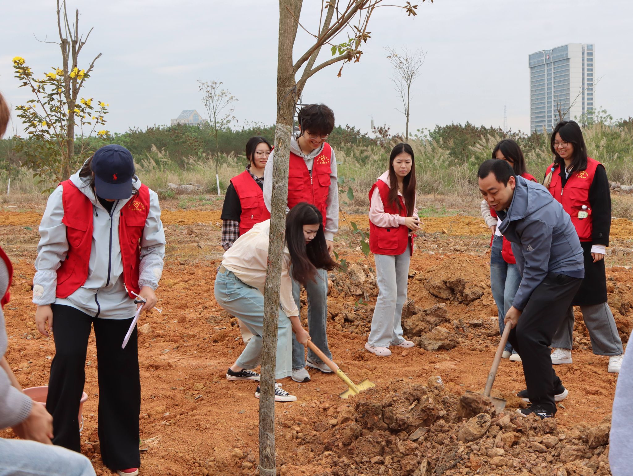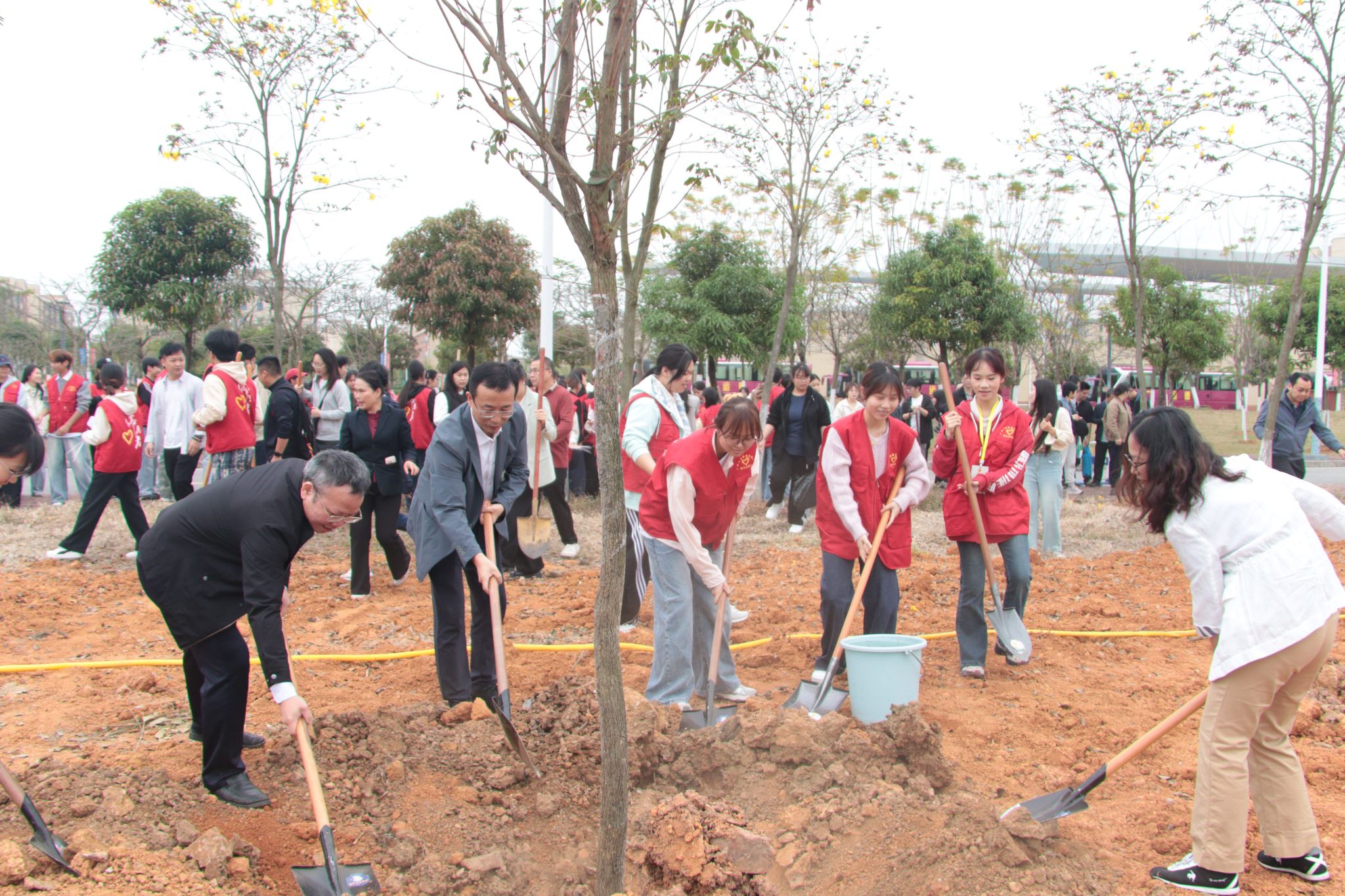 春回大地,萬象更新。為深入貫徹習(xí)近平生態(tài)文明思想,落實(shí)國家和自治區(qū)有關(guān)部署要求,進(jìn)一步優(yōu)化校園生態(tài)環(huán)境,踐行綠色發(fā)展理念,3月18日,我校在武鳴校區(qū)開展2026年植樹活動(dòng)。學(xué)校黨委副書記、校長劉進(jìn),副校長闕勇平、鄭華,各部門、各二級學(xué)院師生代表共同參加活動(dòng)。