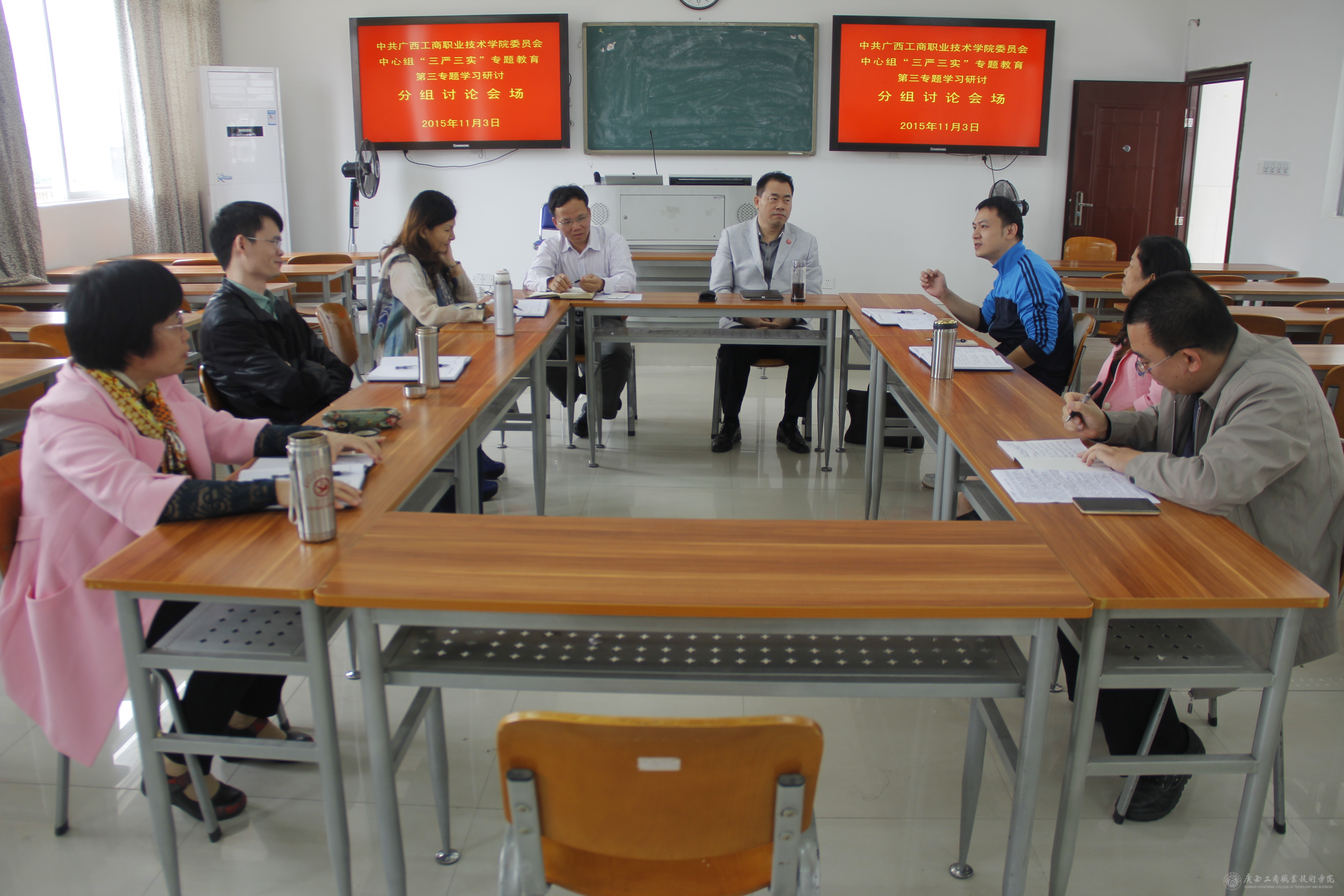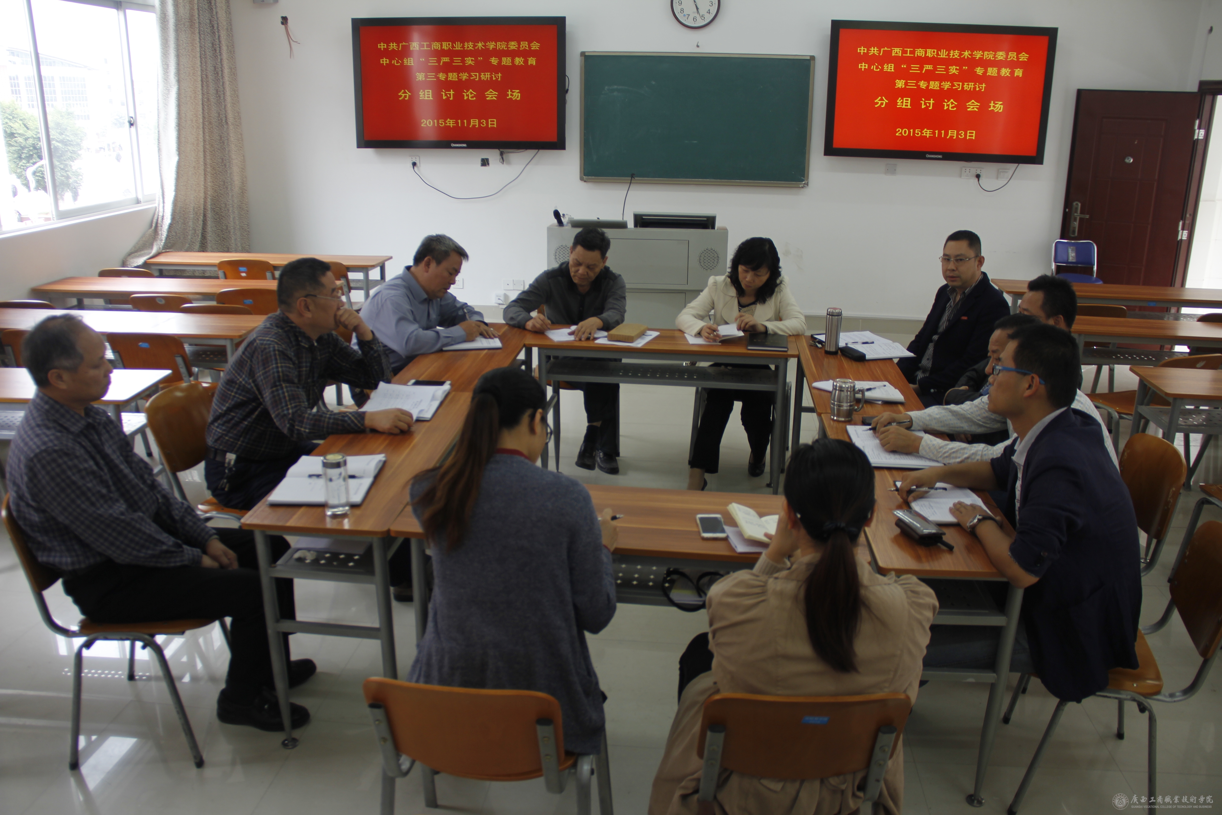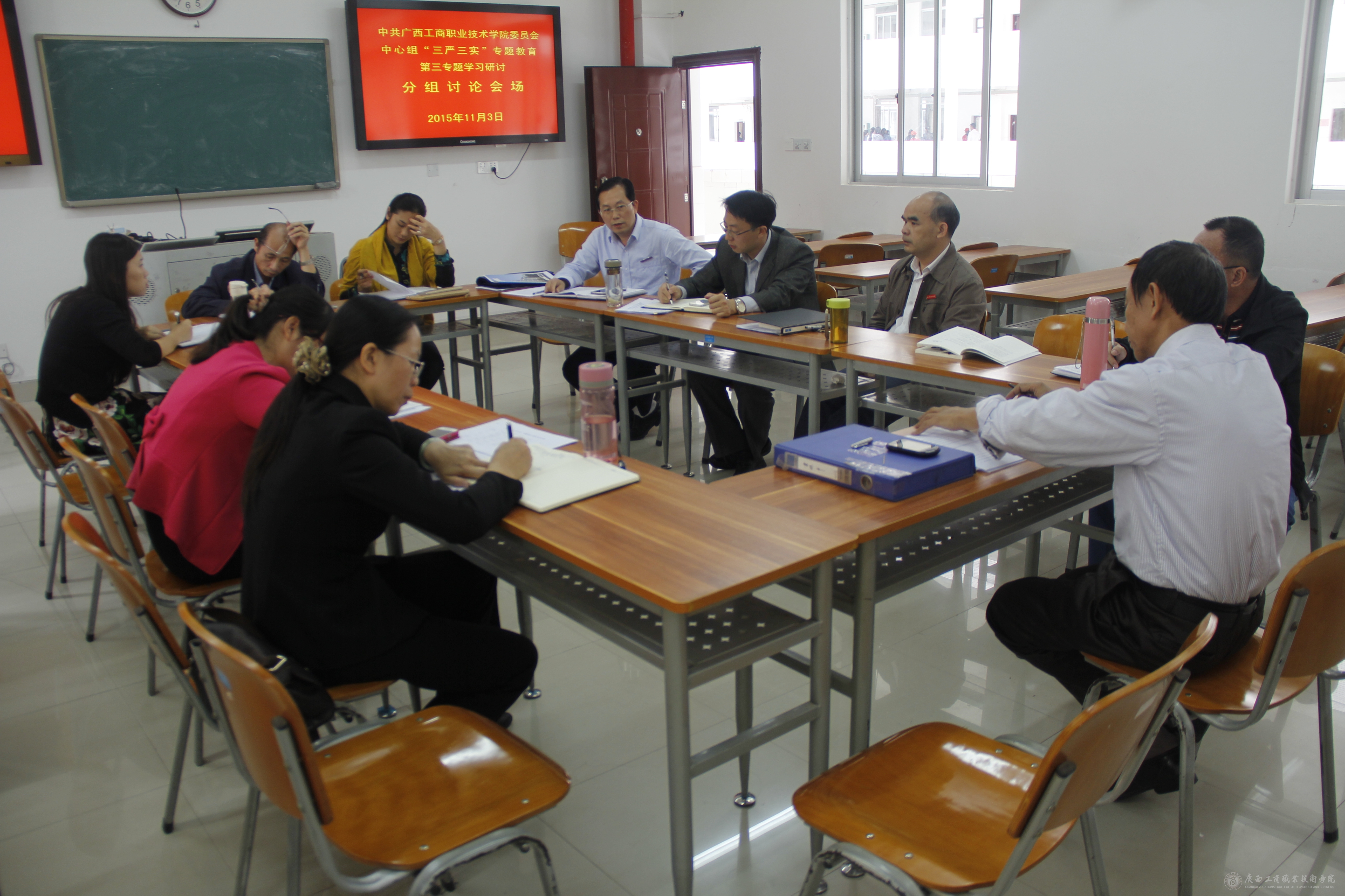 2015年11月3日上午9時,我院在教學(xué)樓2119會議室召開黨委中心組“三嚴三實”專題教育第三專題學(xué)習(xí)研討會。學(xué)院中層以上領(lǐng)導(dǎo)干部參加此次研討會,會議由覃武云書記主持。