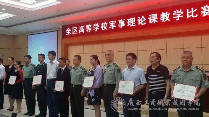 2015年11月18、19日,由自治區(qū)教育廳和廣西軍區(qū)司令部主辦,廣西經(jīng)貿(mào)職業(yè)技術(shù)學(xué)院承辦的2015年廣西高校軍事理論課教育比賽決賽在廣西經(jīng)貿(mào)職業(yè)技術(shù)學(xué)院舉辦。我院張宇斐老師參加總決賽并獲得了三等獎。這為我院學(xué)生素質(zhì)課程教學(xué)錦上添花。據(jù)悉,由我院黨委學(xué)工部負責(zé)組織開展的四門課程,已有三門獲得區(qū)級大賽相關(guān)獎項。這將大大鼓勵和推進我院學(xué)生素質(zhì)教育課程的教學(xué)改革。